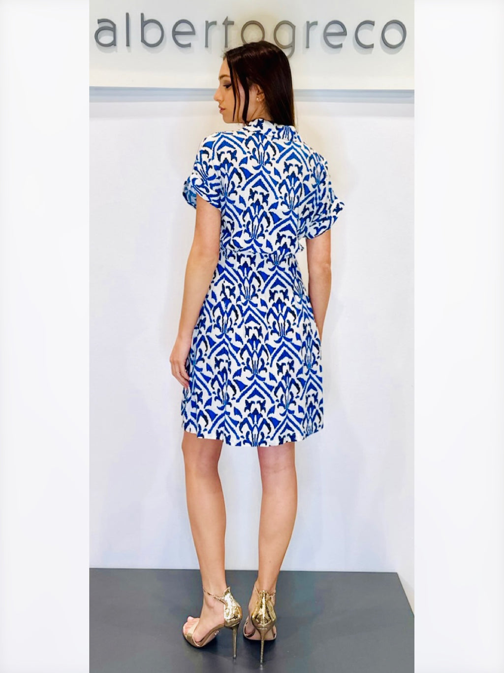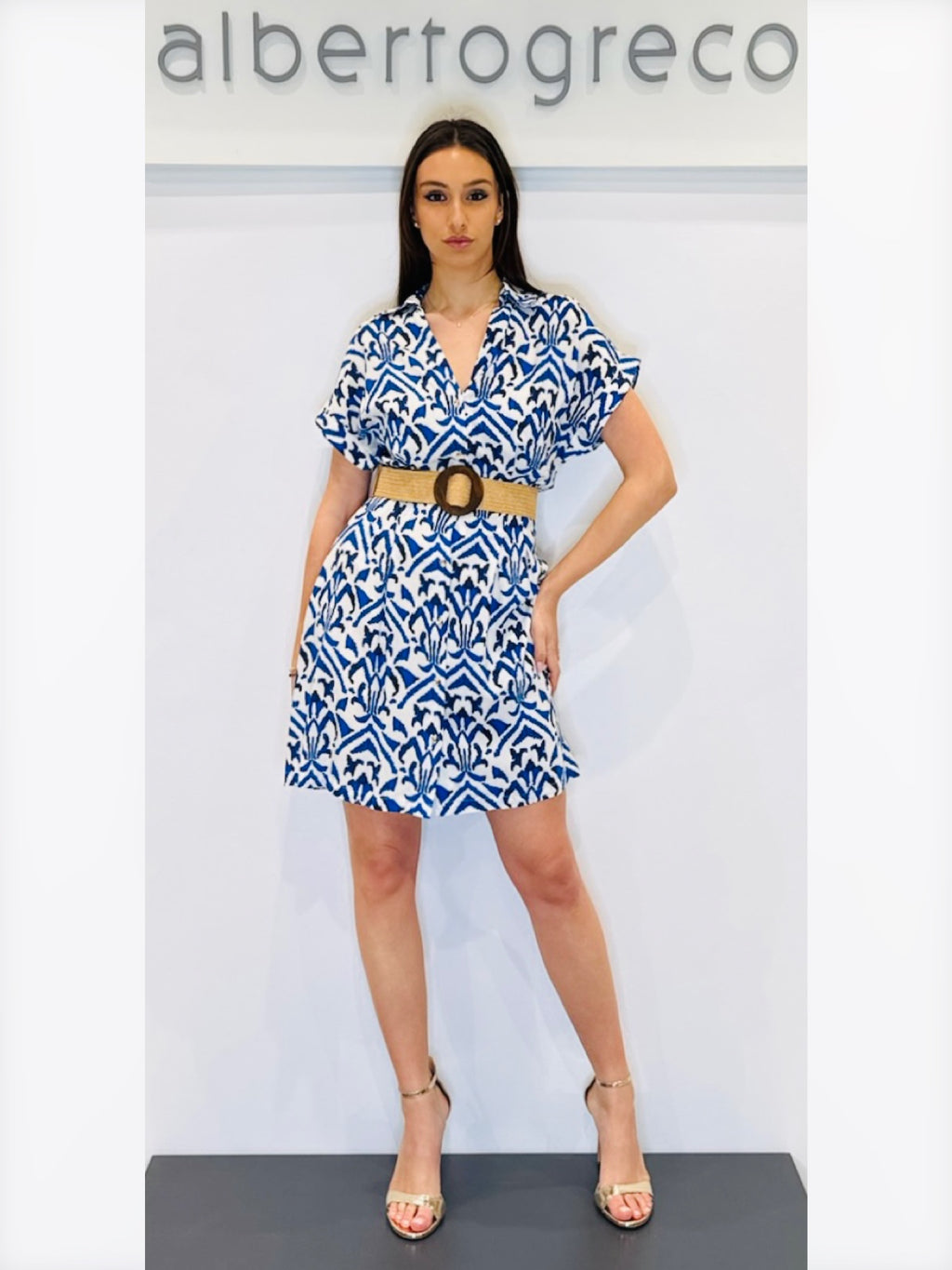Abito chemisier fantasia maiolicheVestibilità regolare, sfoderatoCollo a camicia abbottonatura funzionale, con cintura elasticizzata Manica corta a chimonoLavare a 30°Tessuto 100%VI