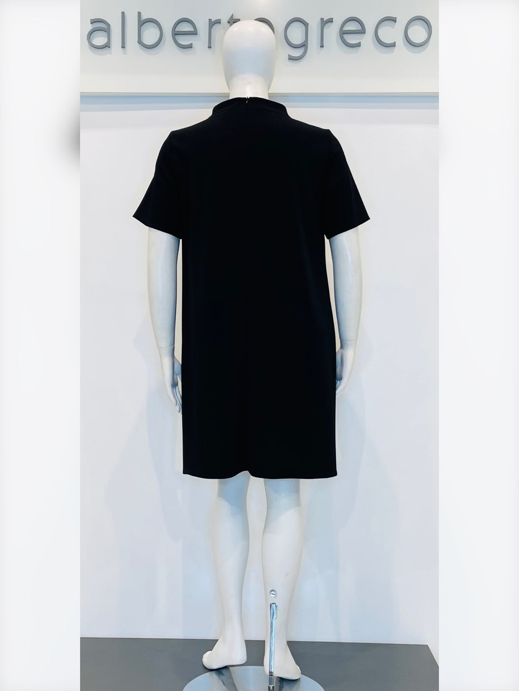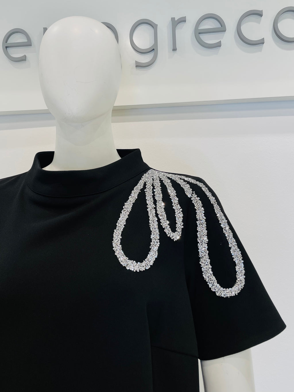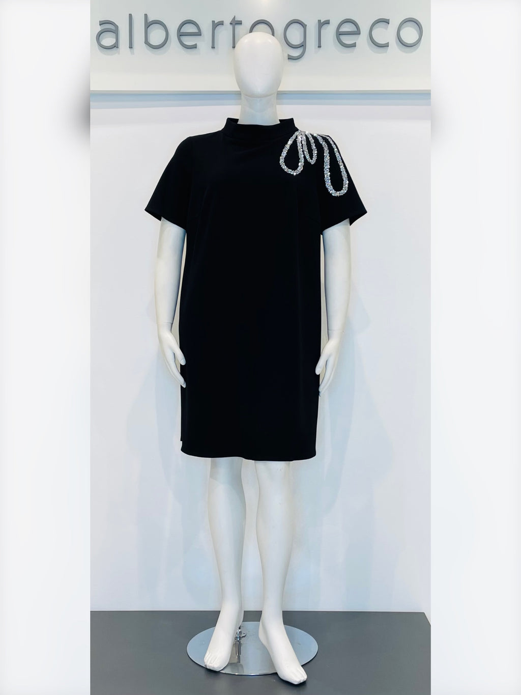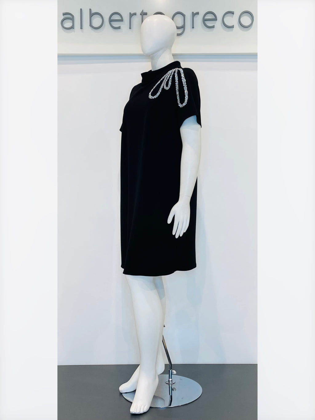 Abito in crepe ampio con applicazione in cristalli su spalla