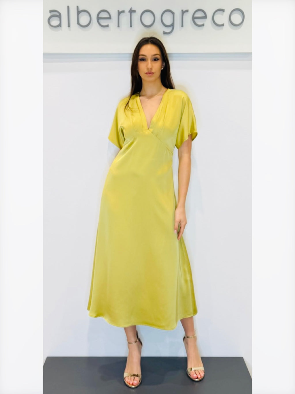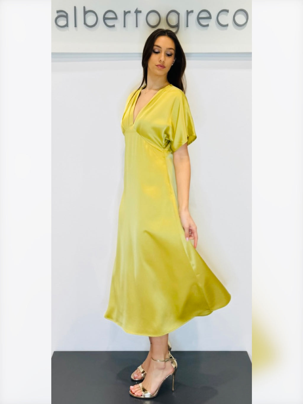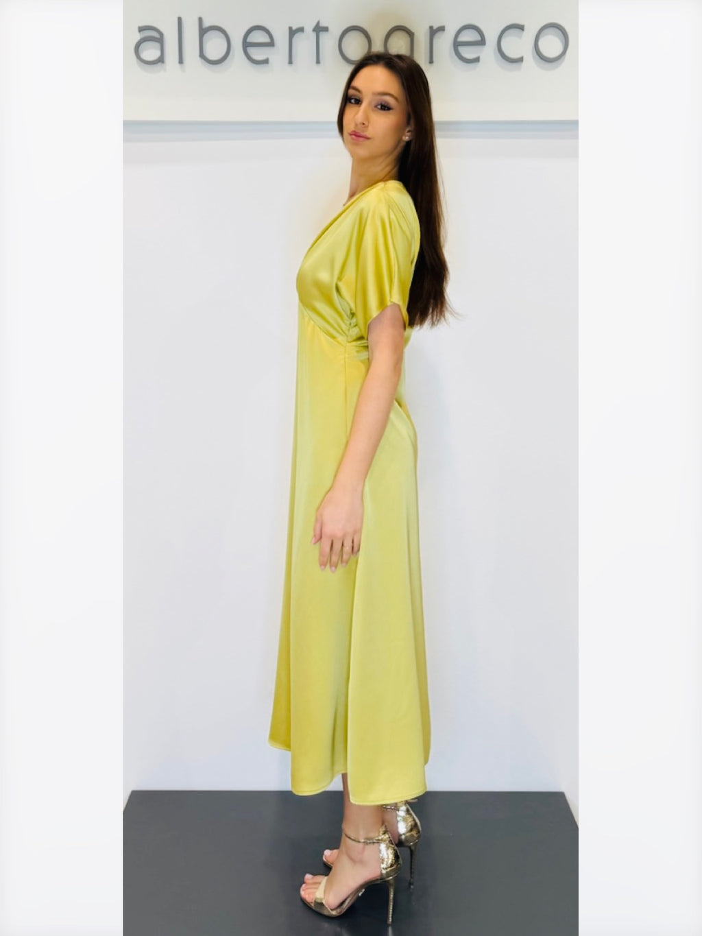 Abito longuette in raso con manica cortaVestibilità regolare Scollo a V con drappeggioCon zip invisibile su fianco Lavare a 30°Tessuto 50%VI 50%ACETATO