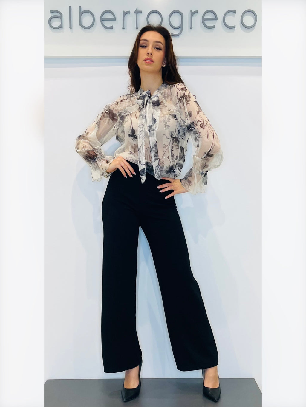 Blusa fantasia con scollo a fioccoVestibilità regolare ampiaScollo a V con fusciacca annodabile su scollo Senza zip, con manica lunga con polsino arricciato Lavare a 30°Tessuto 100%PL
