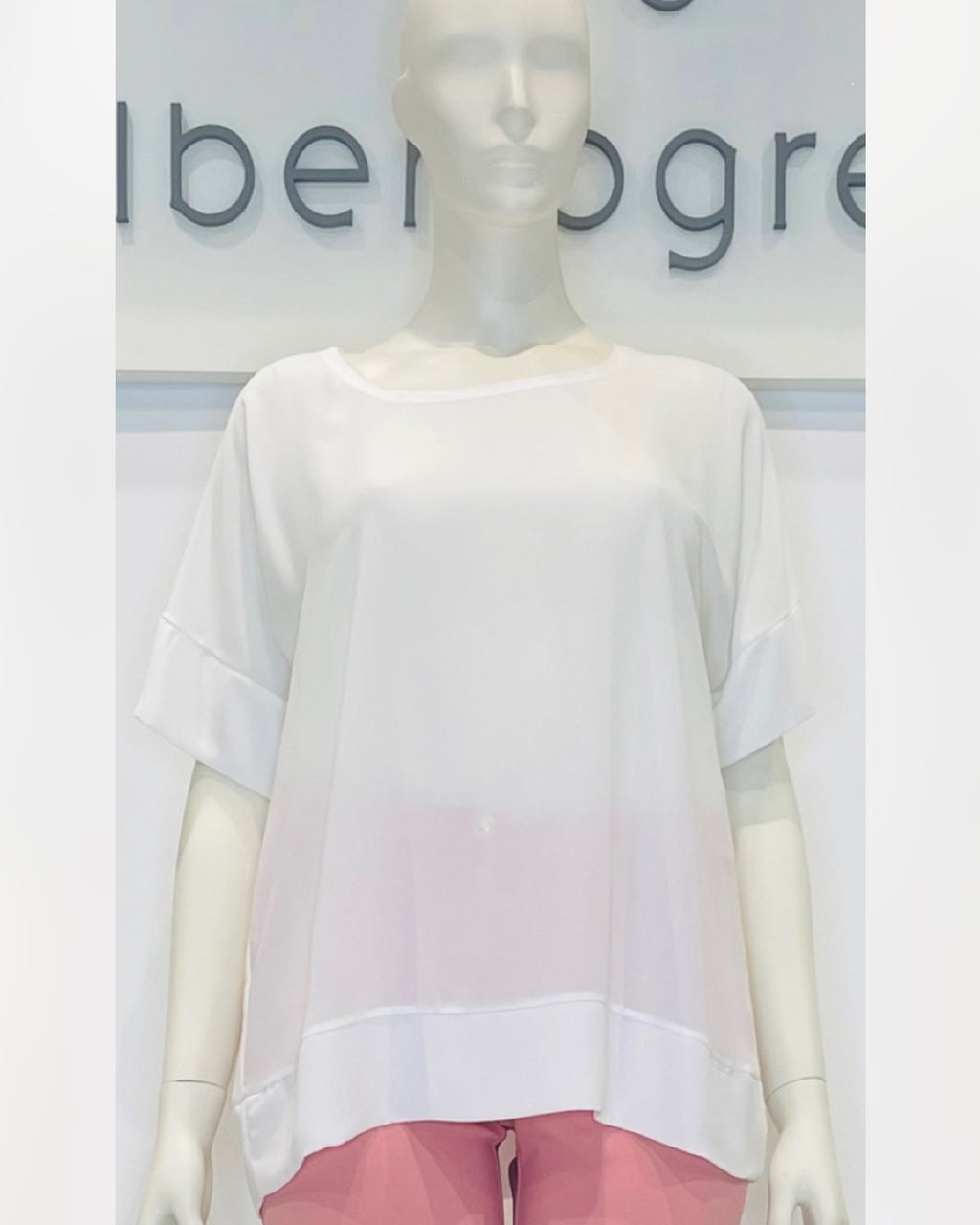 Blusa girocollo con manica a kimonoVestibilità morbida GirocolloManica corta scesaLavare a 30°Tessuto 100%PL