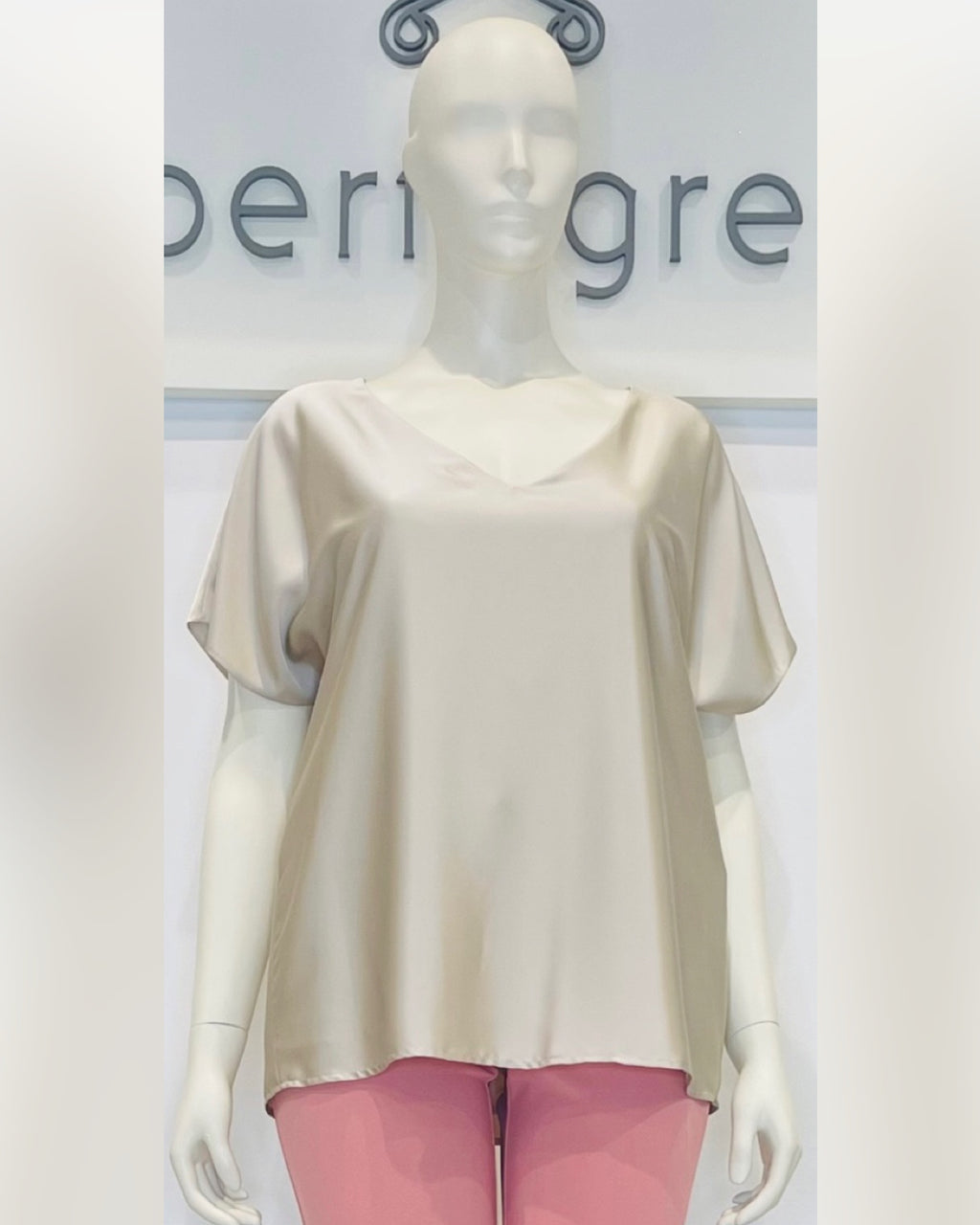 Blusa in raso con scollo a V e manica a kimono Vestibilità morbida Scollo a V Manica corta scesaLavare a 30°Tessuto 100%PL