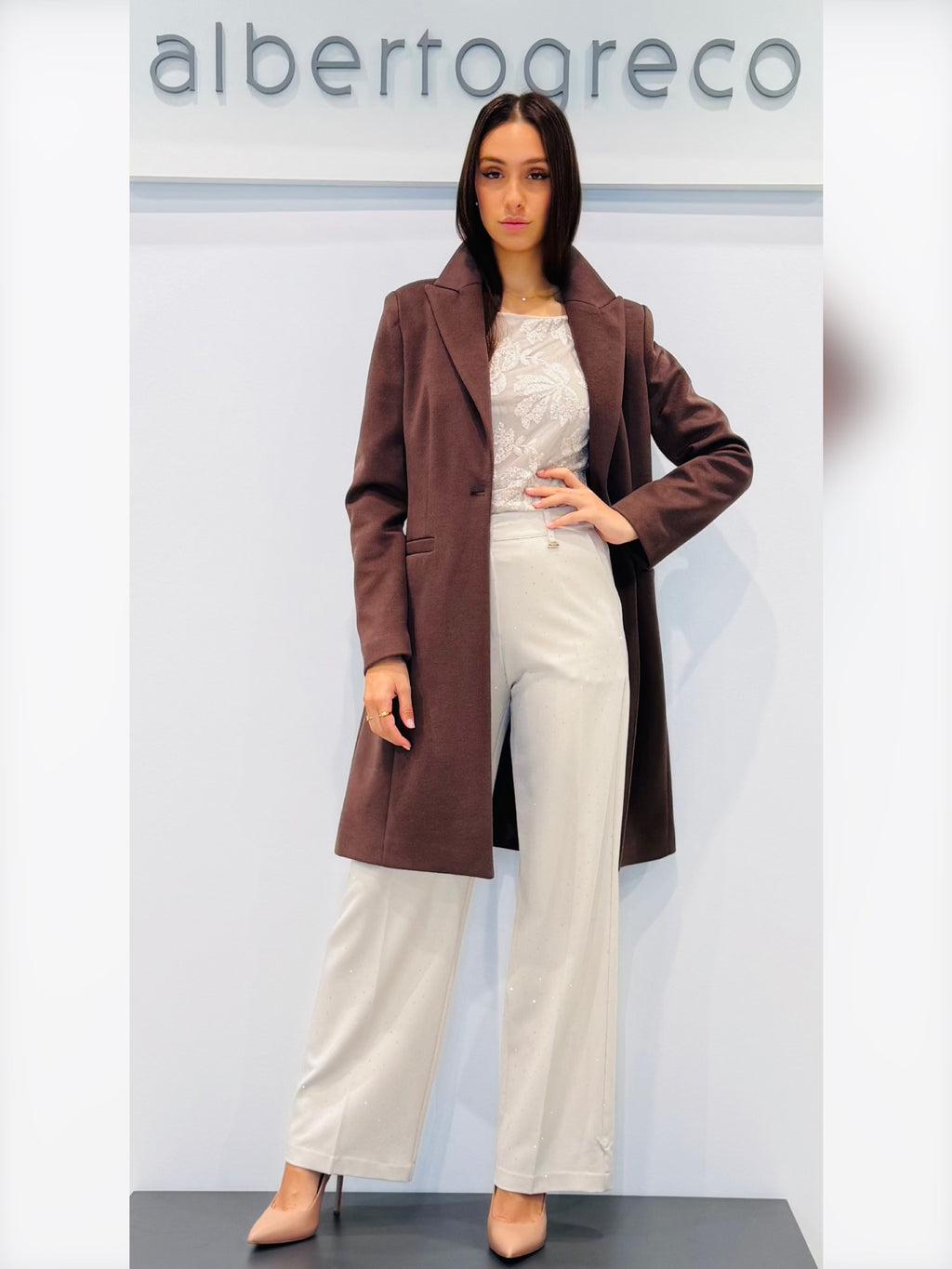 Cappotto un bottoneCappotto foderato, costruito con spallinaVestibilità regolareCon tasche a a filettoCollo a rever con chiusura a un bottoneLavare a mano Tessuto esterno 92%PL 8%VI Fodera 100%PL