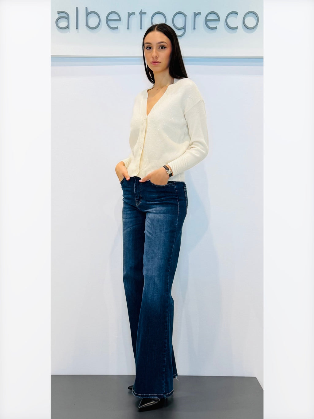 Cardigan ricamato con paillettes con motivo a rombiVestibilità regolare overScollo a V, con tre bottoniLavare a 30°Filato 57%NYLON 43%VI