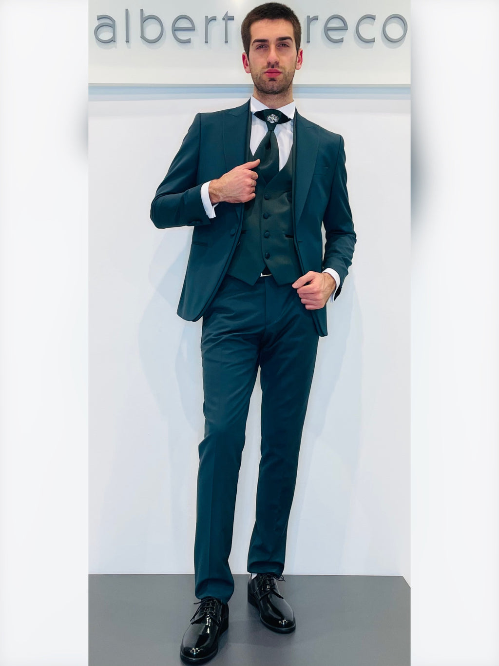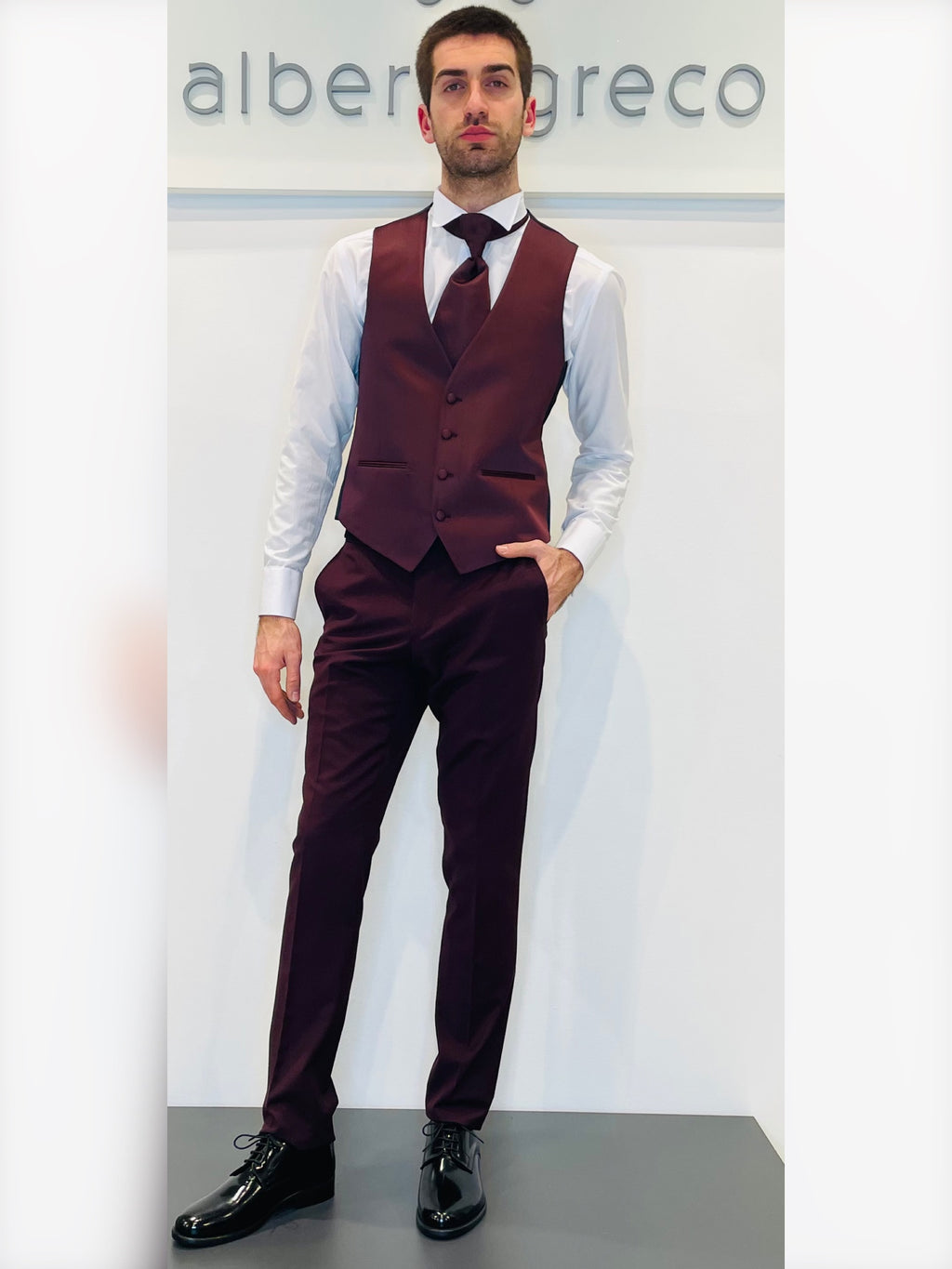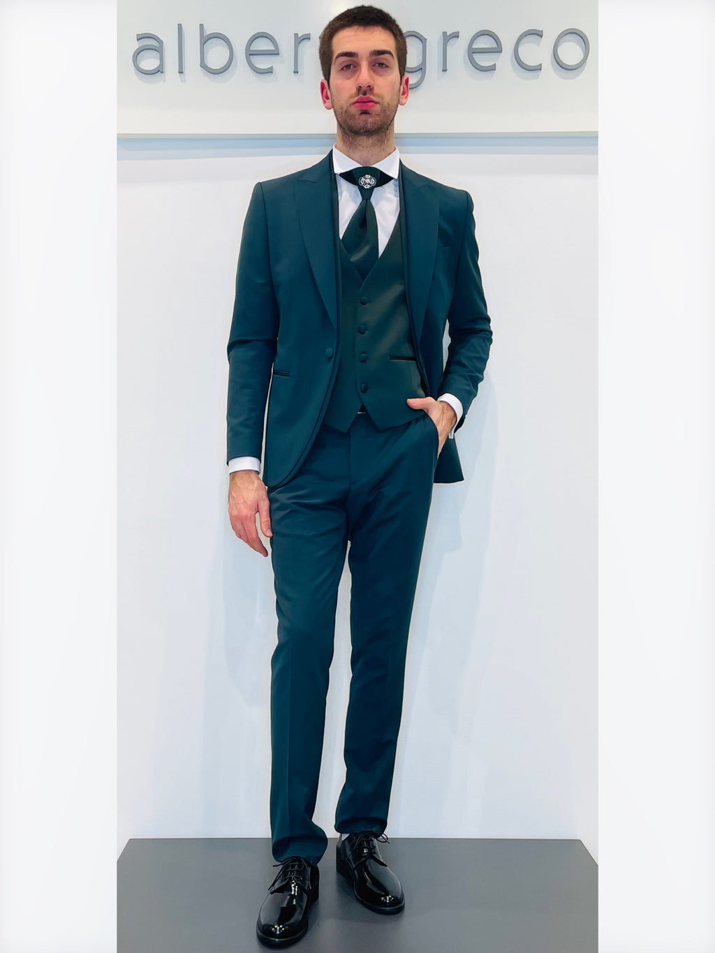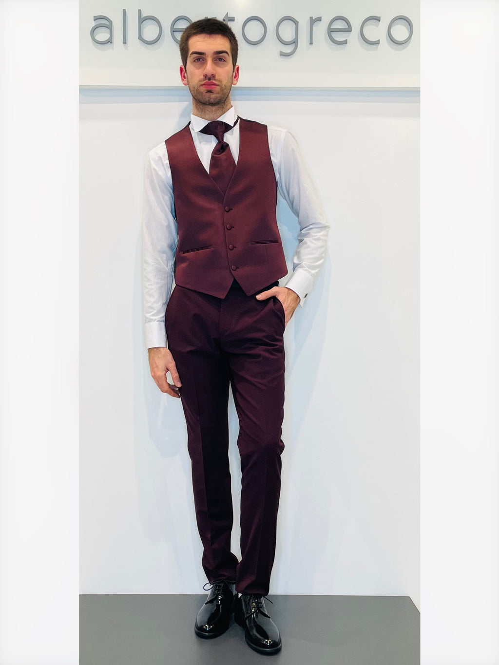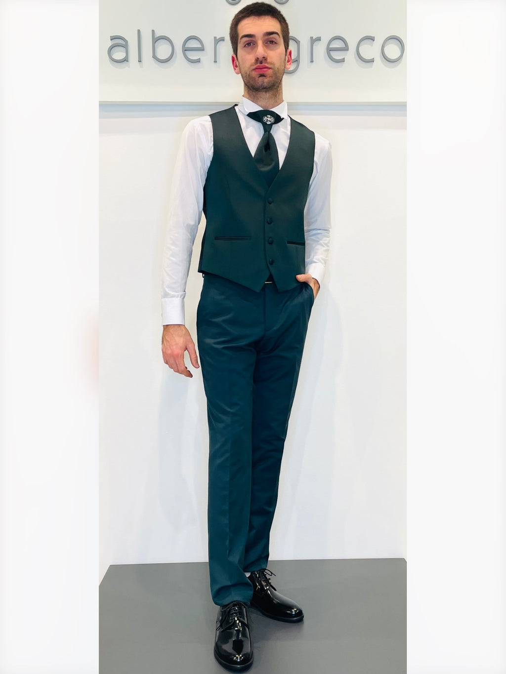 Completo cerimonia con giacca con motivo in raso su davanti