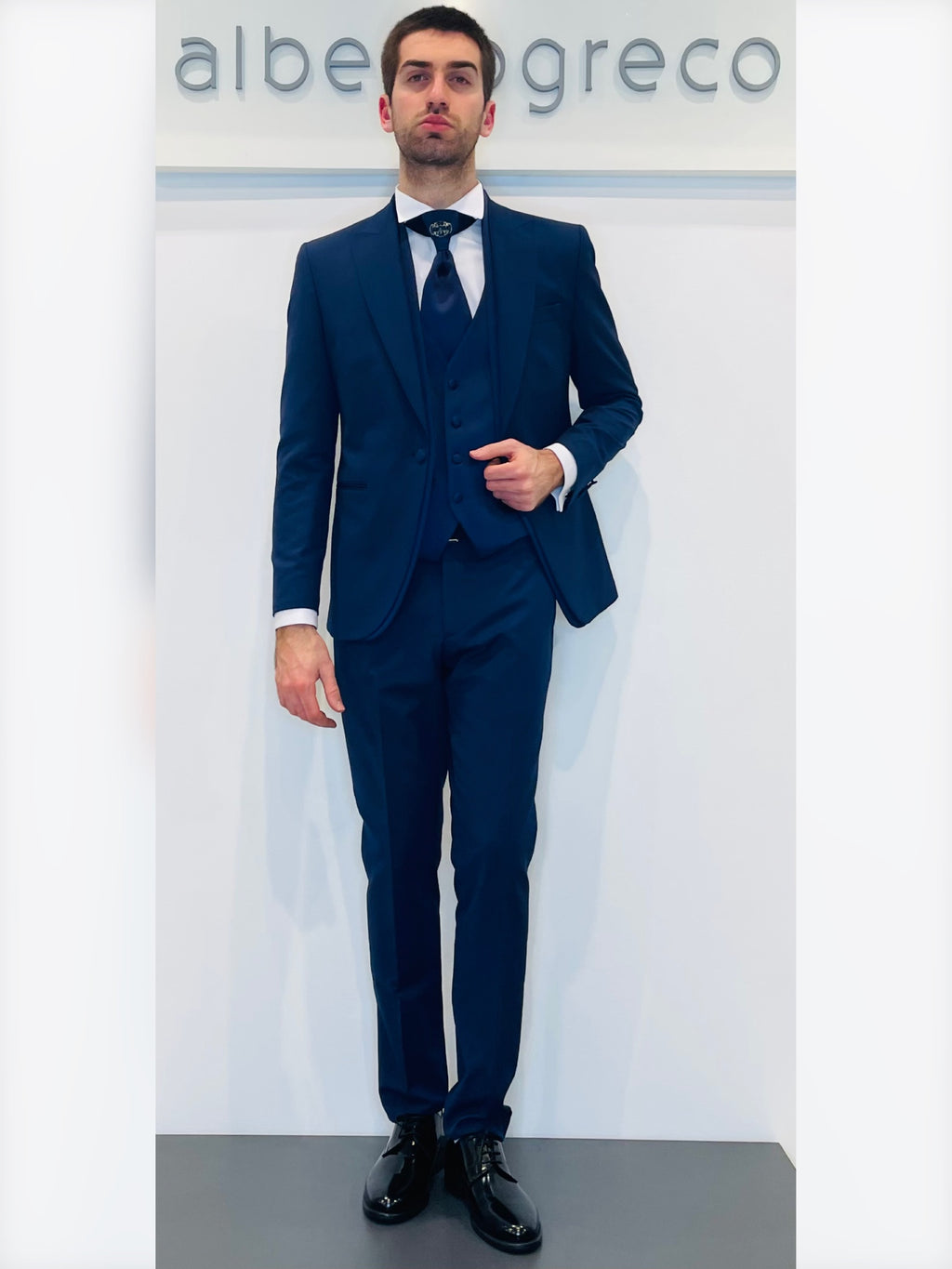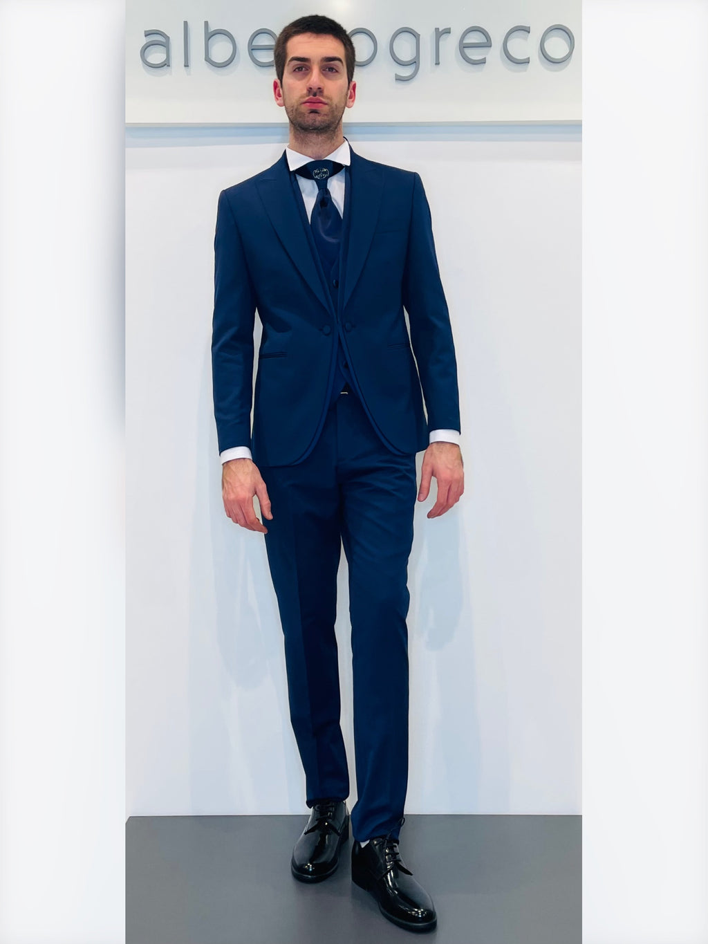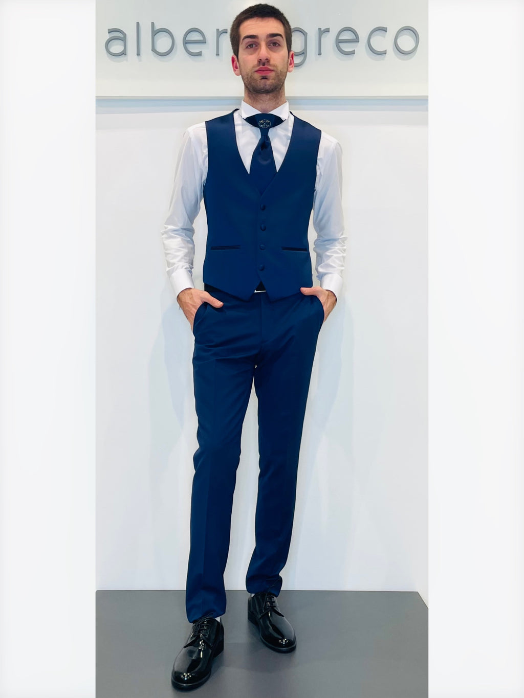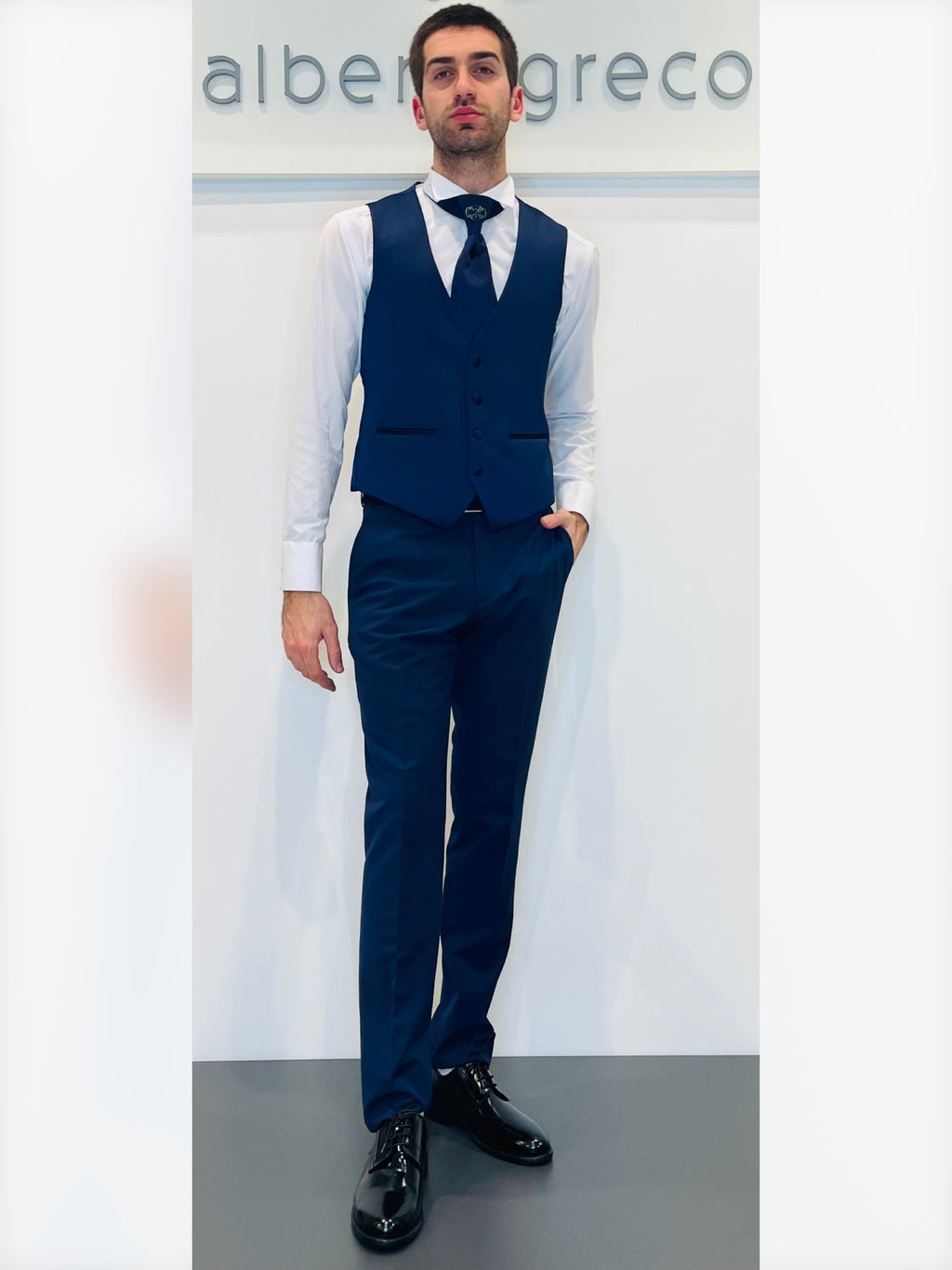 Completo cerimonia con giacca con motivo in raso su davanti