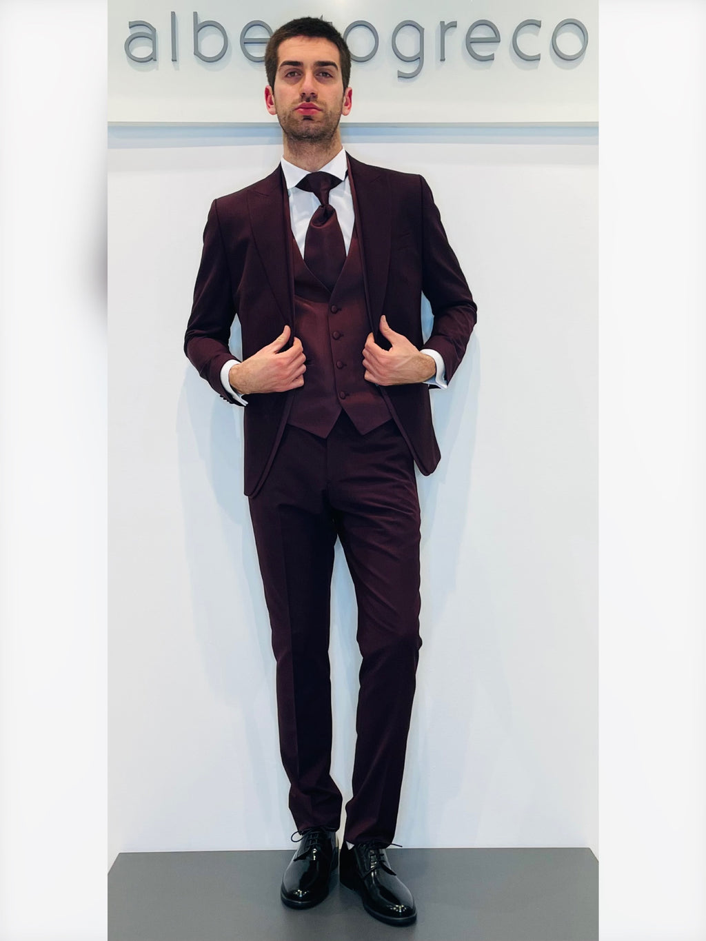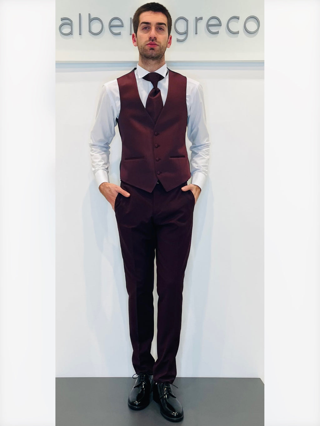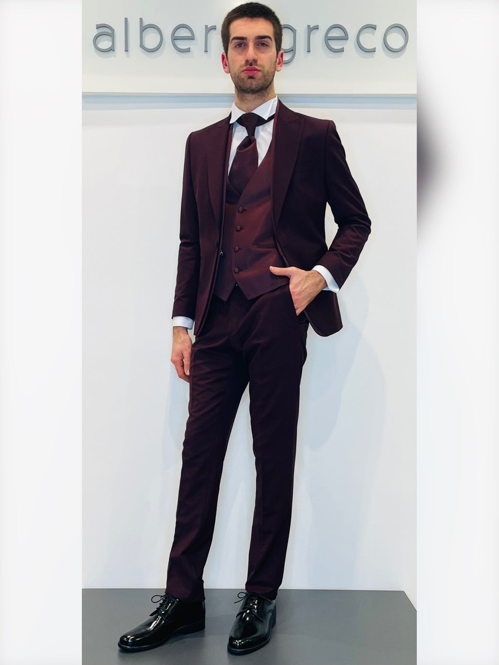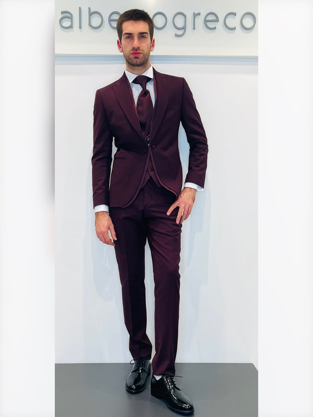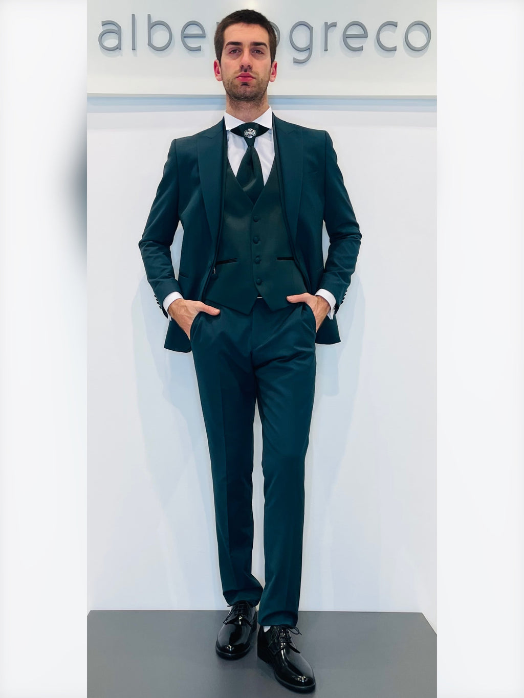 Completo cerimonia con giacca con motivo in raso su davanti