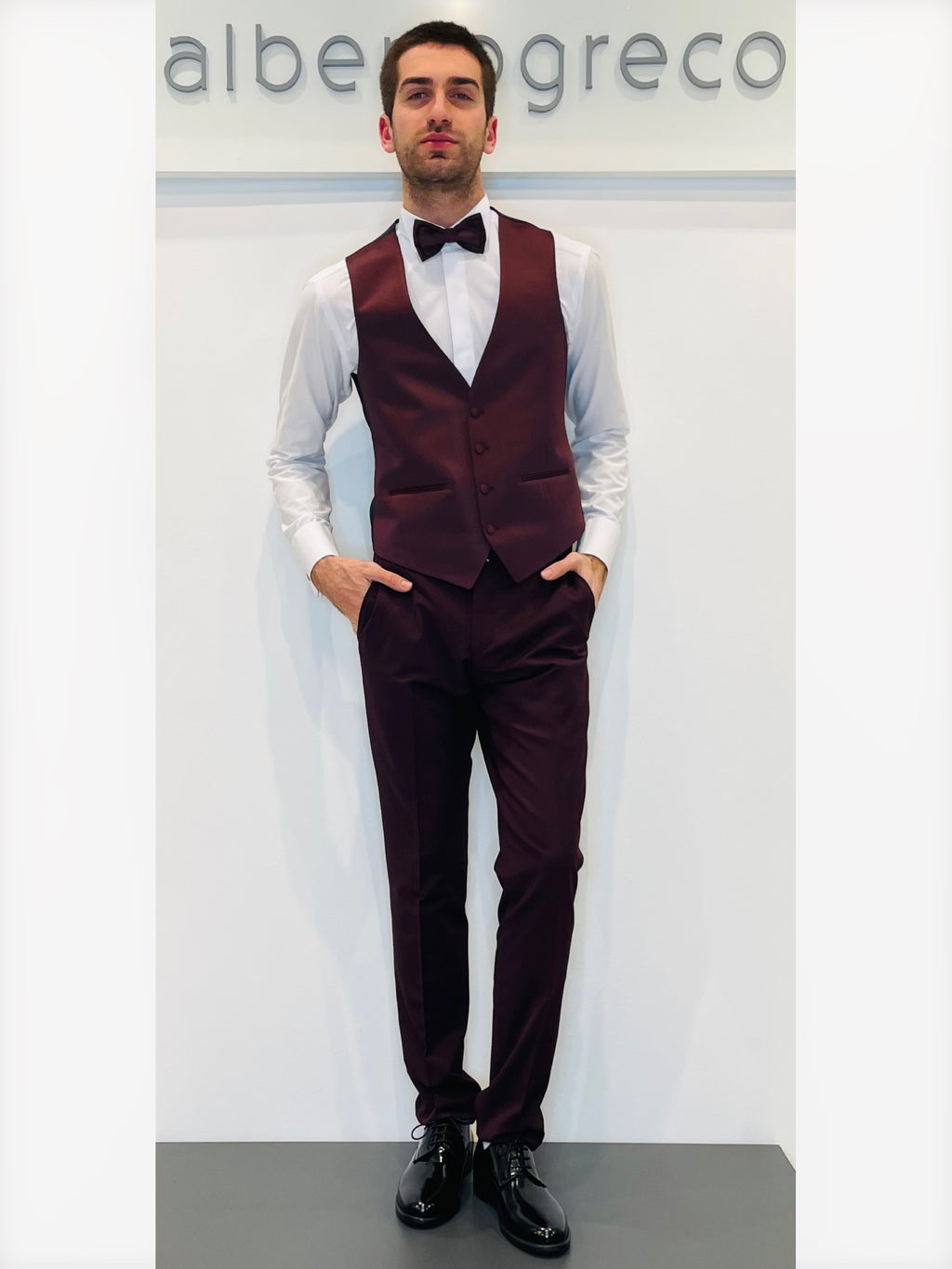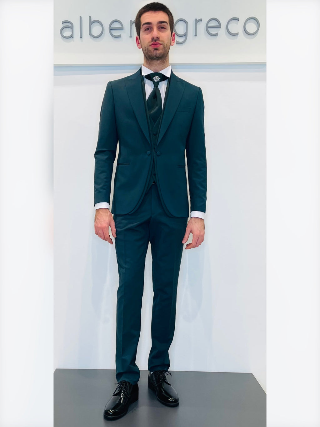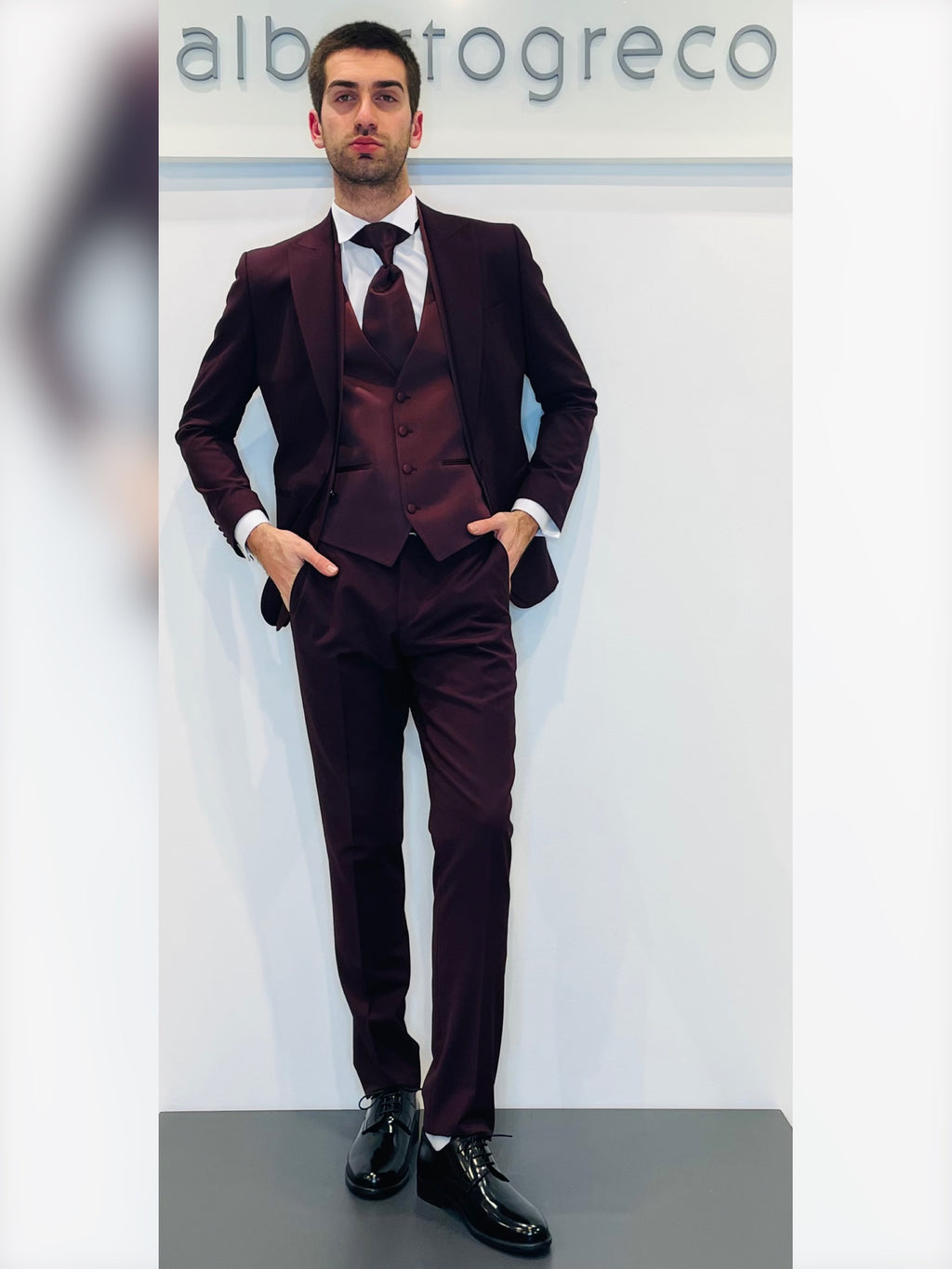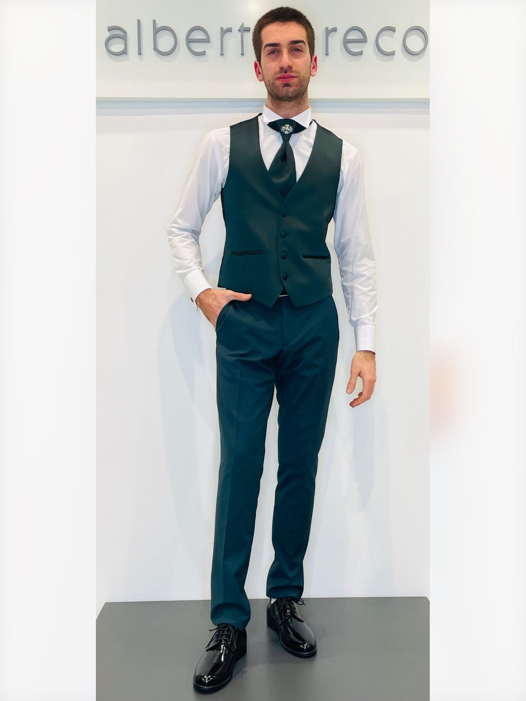 Completo cerimonia con giacca con motivo in raso su davanti