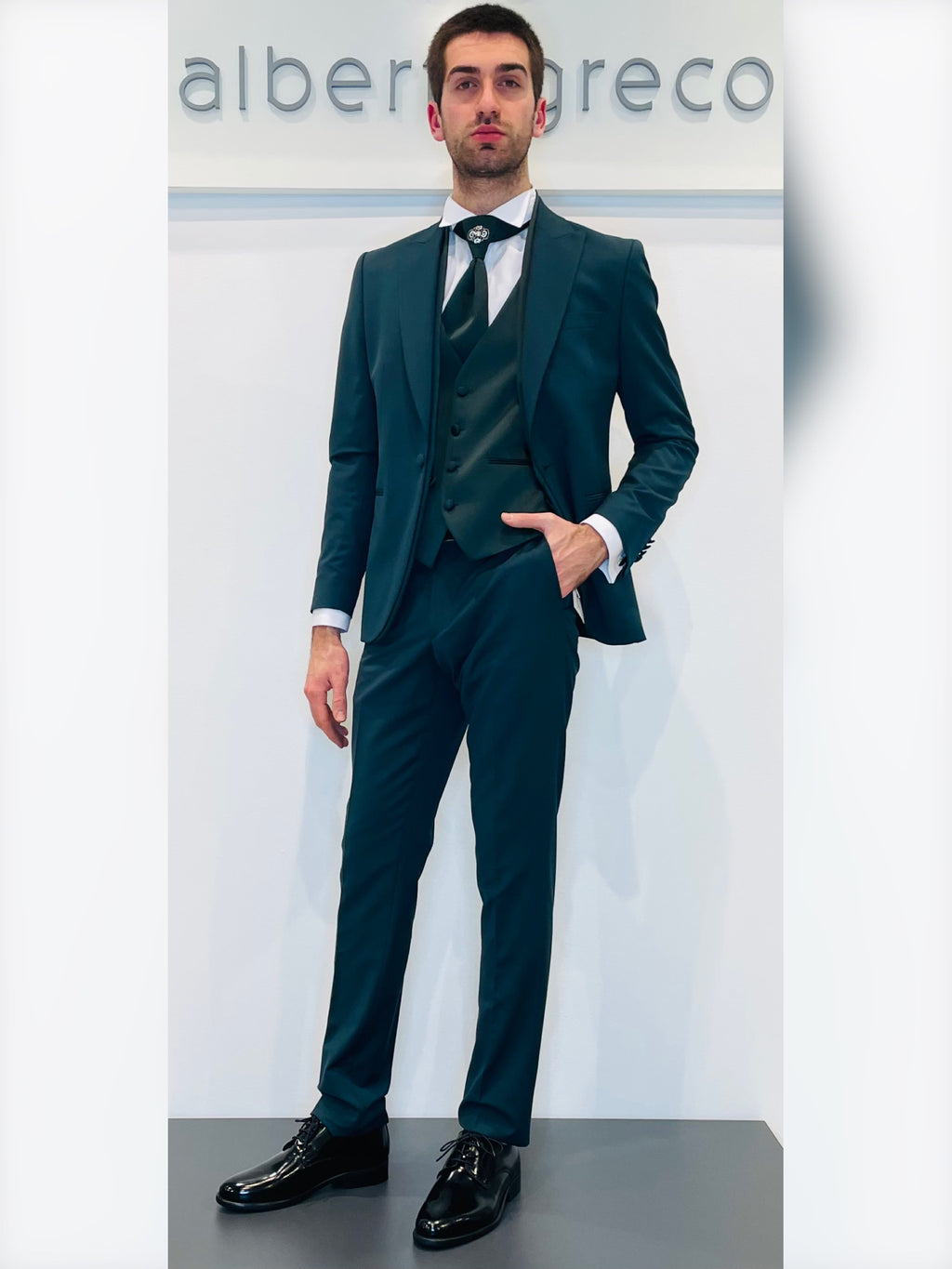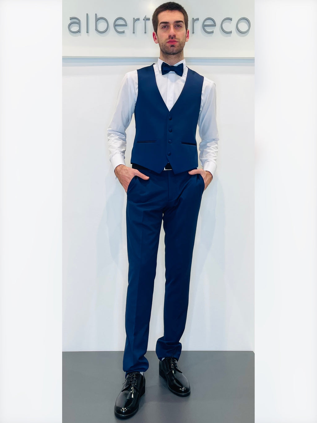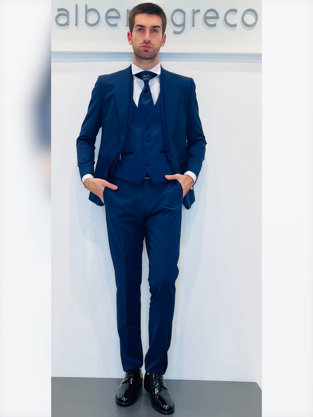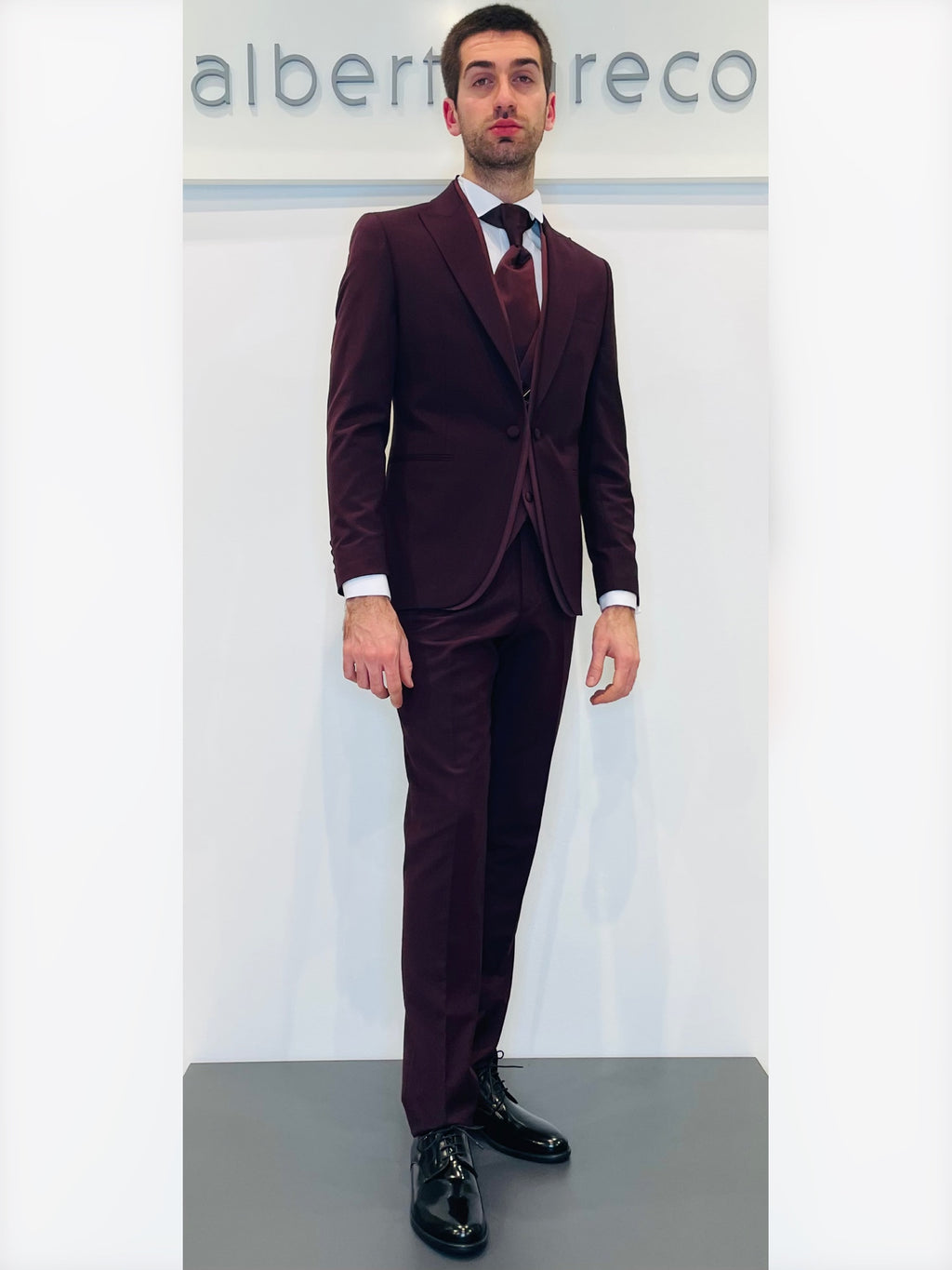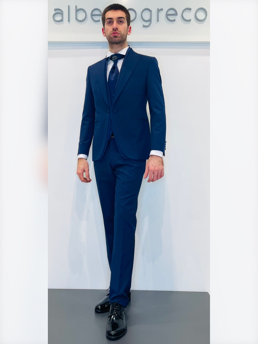 Completo cerimonia con giacca con motivo in raso su davanti