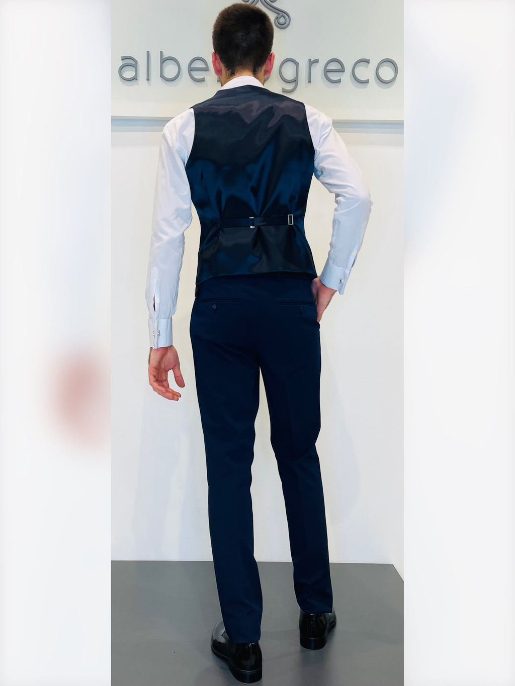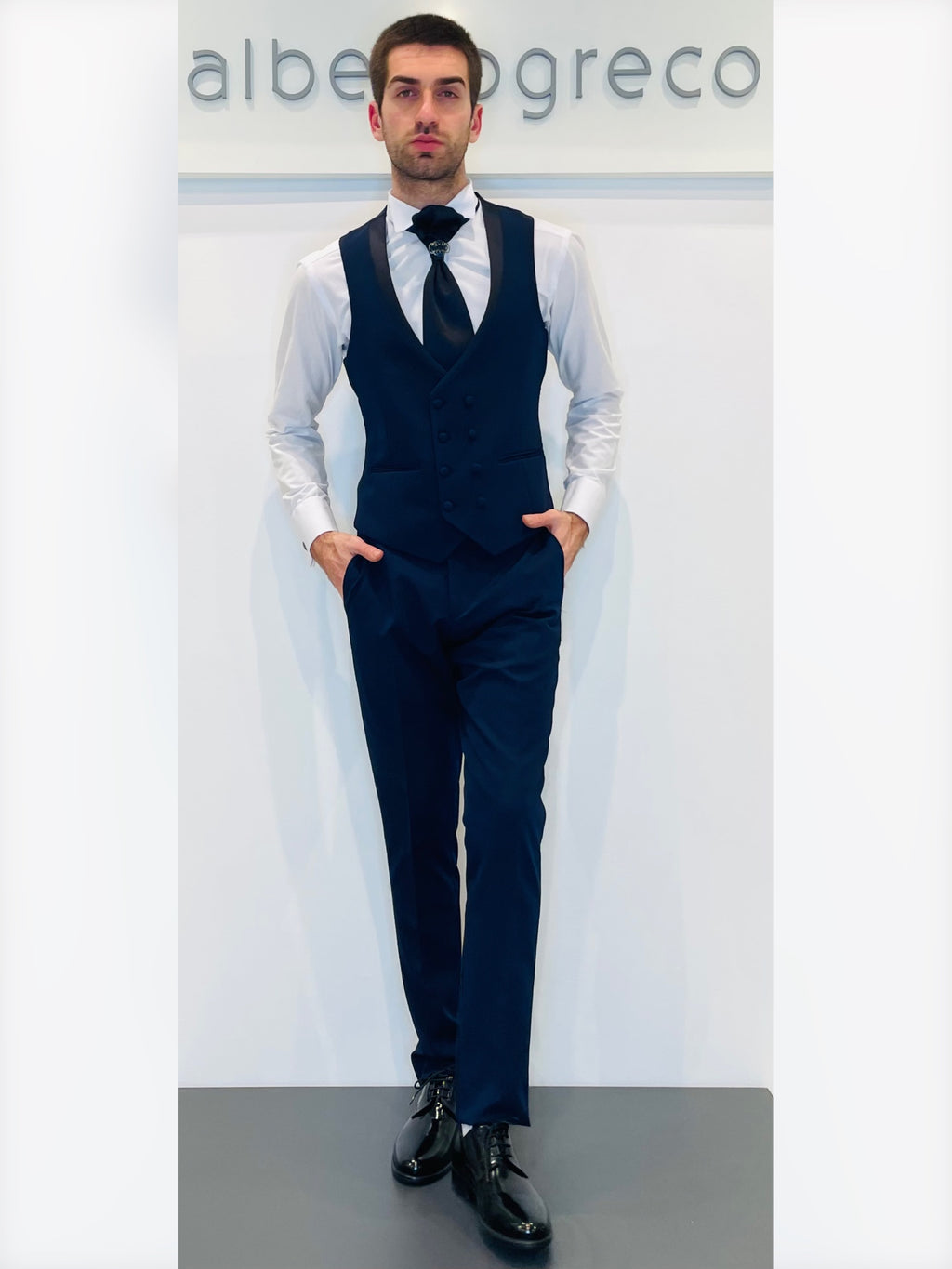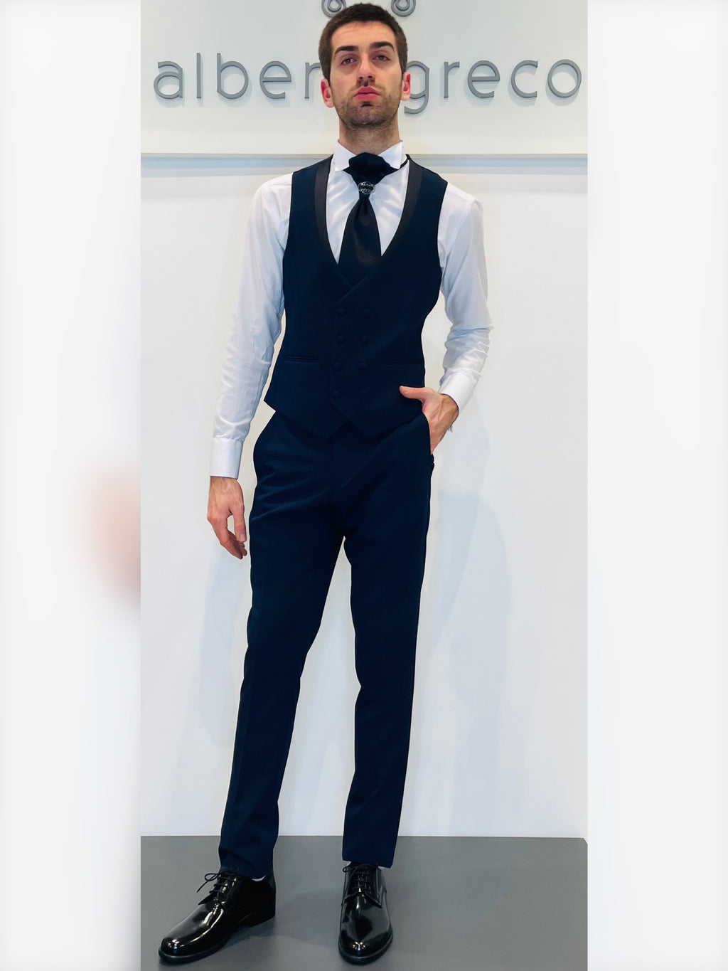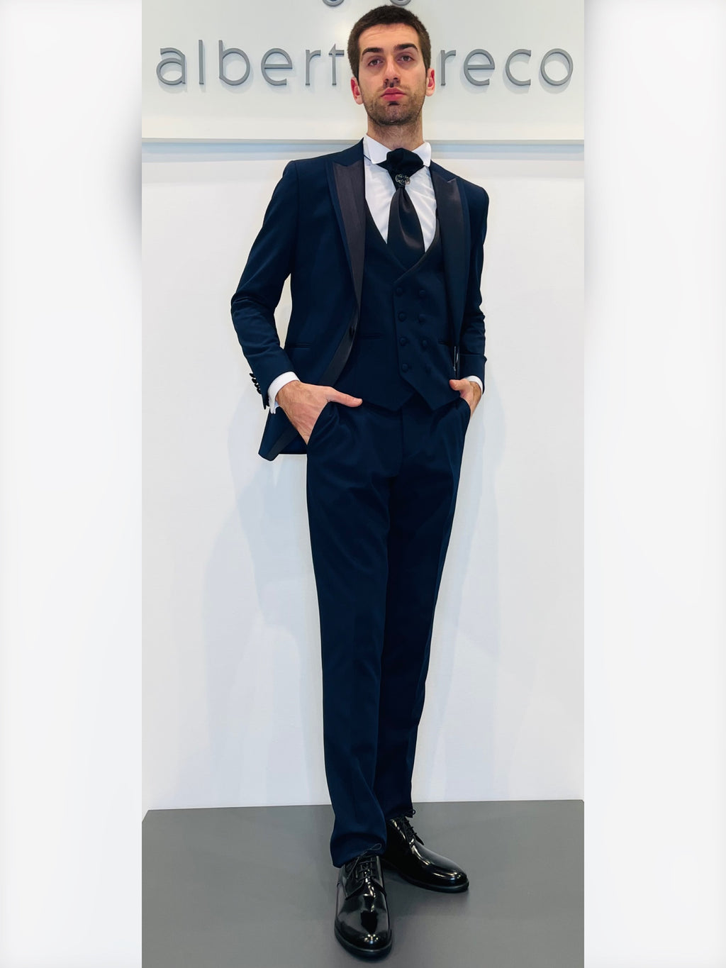 Completo cerimonia con giacca con rever con inserto in raso
