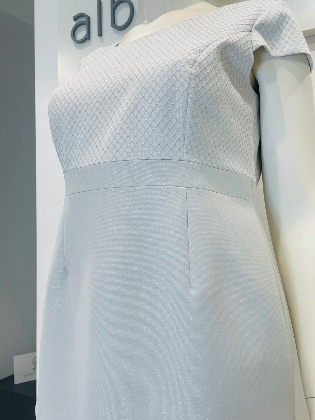 Tubino con corpetto in tessuto damascato e gonna tinta unita liscia.