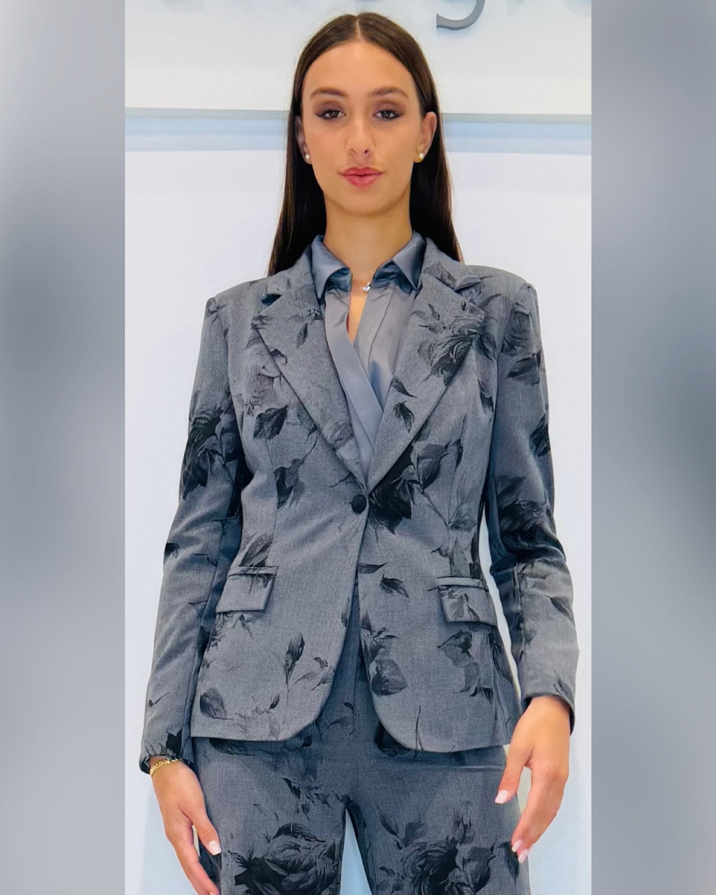 Giacca fantasia floreale un bottone Giacca con spallina strutturata Giacca foderataVestibilità regolareTasche a filetto con pattina esteticheScollo a rever, con un bottoneLavare a 30°Tessuto esterno 63%PL 33%VI 4%EA Fodera 100%PL