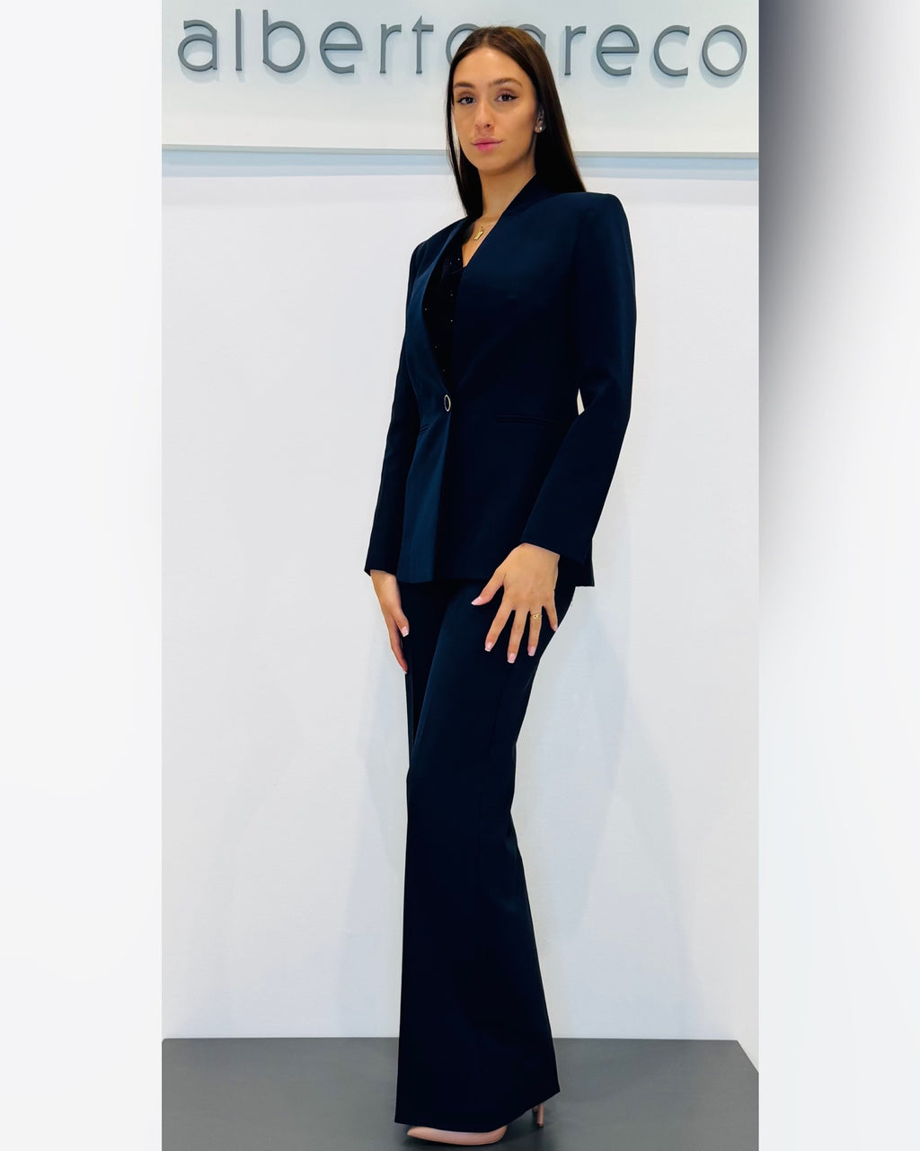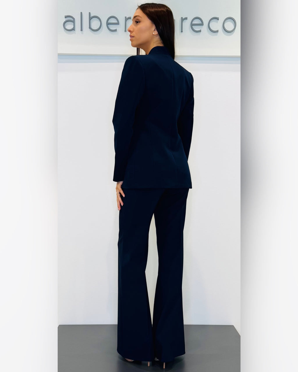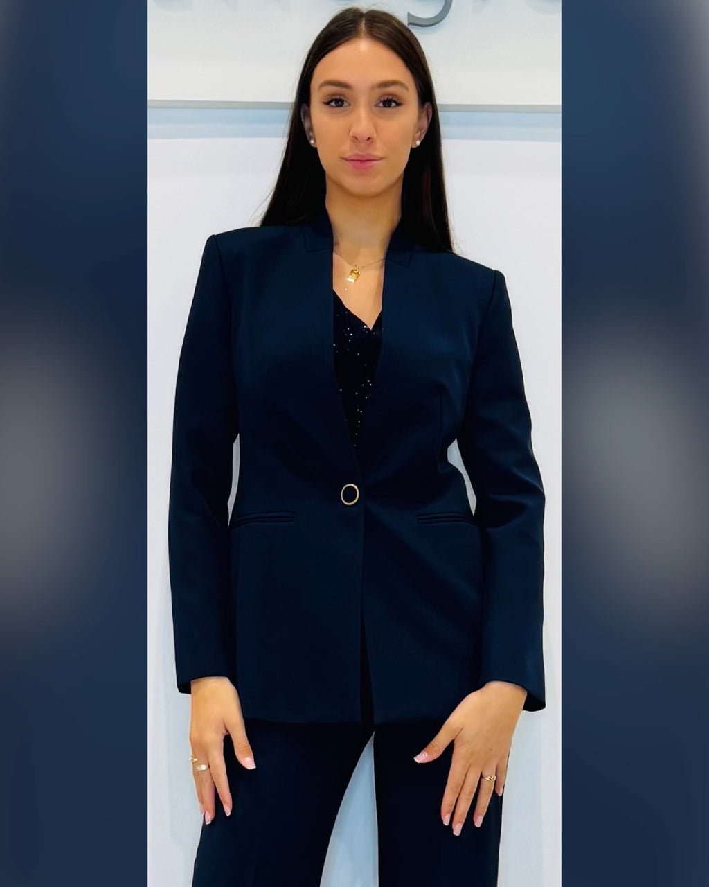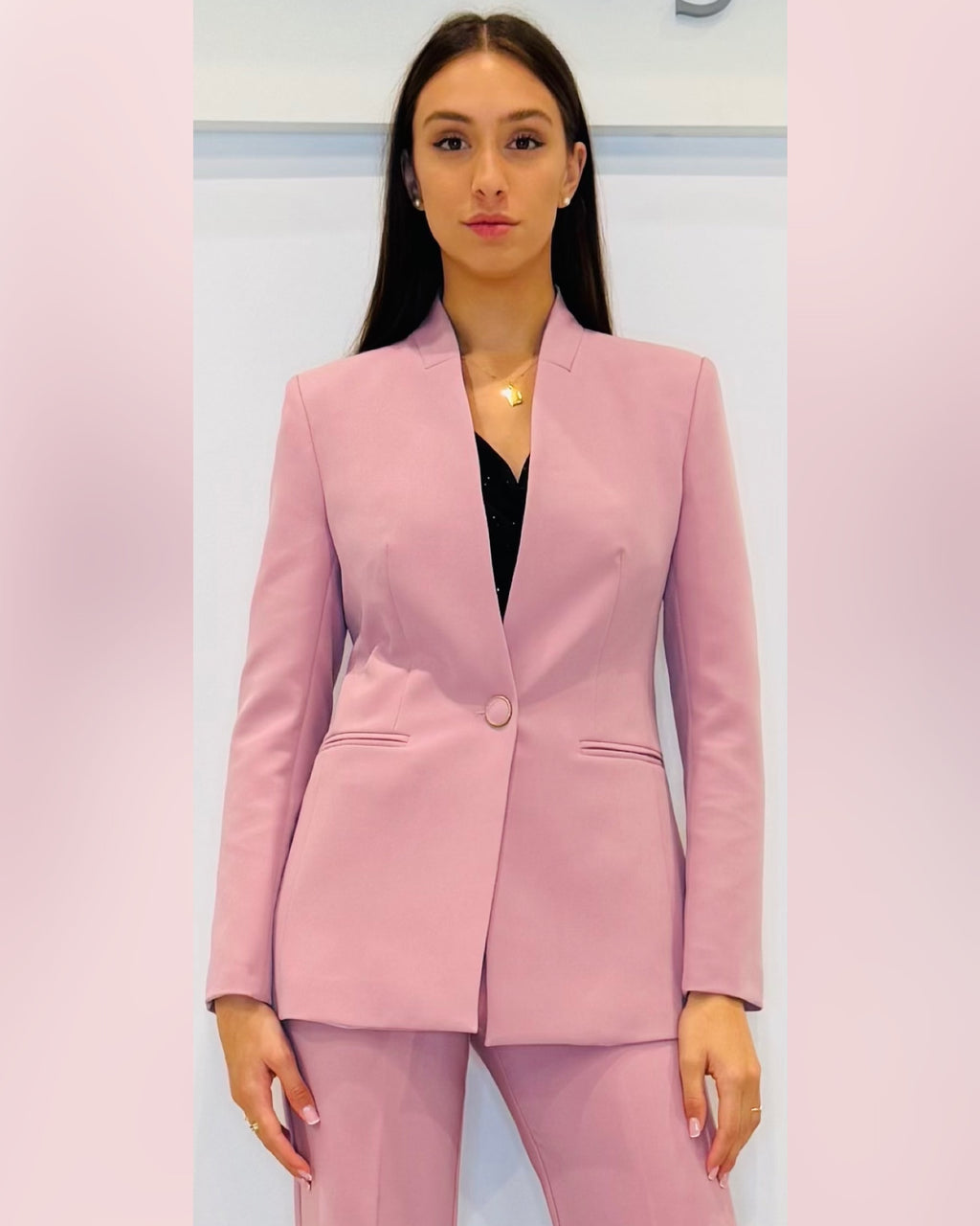 Giacca con collo alla coreana Vestibilità sfiancata, giacca foderata con spalline Collo alla coreana con tasche a filettoChiusura a un bottoneLavare a 30°Tessuto esterno 90%PL 10%EAFodera 100%PLMade in Italy