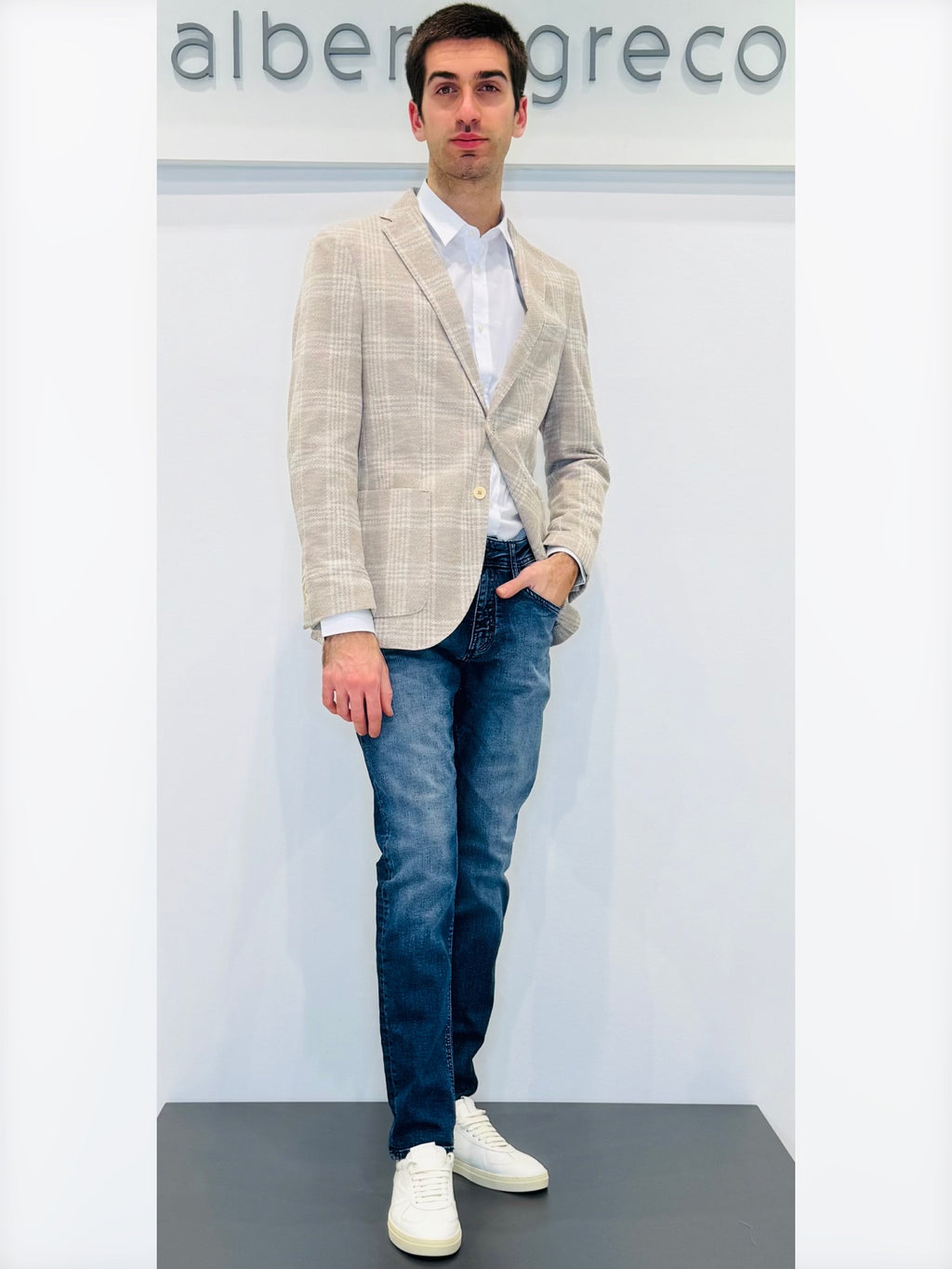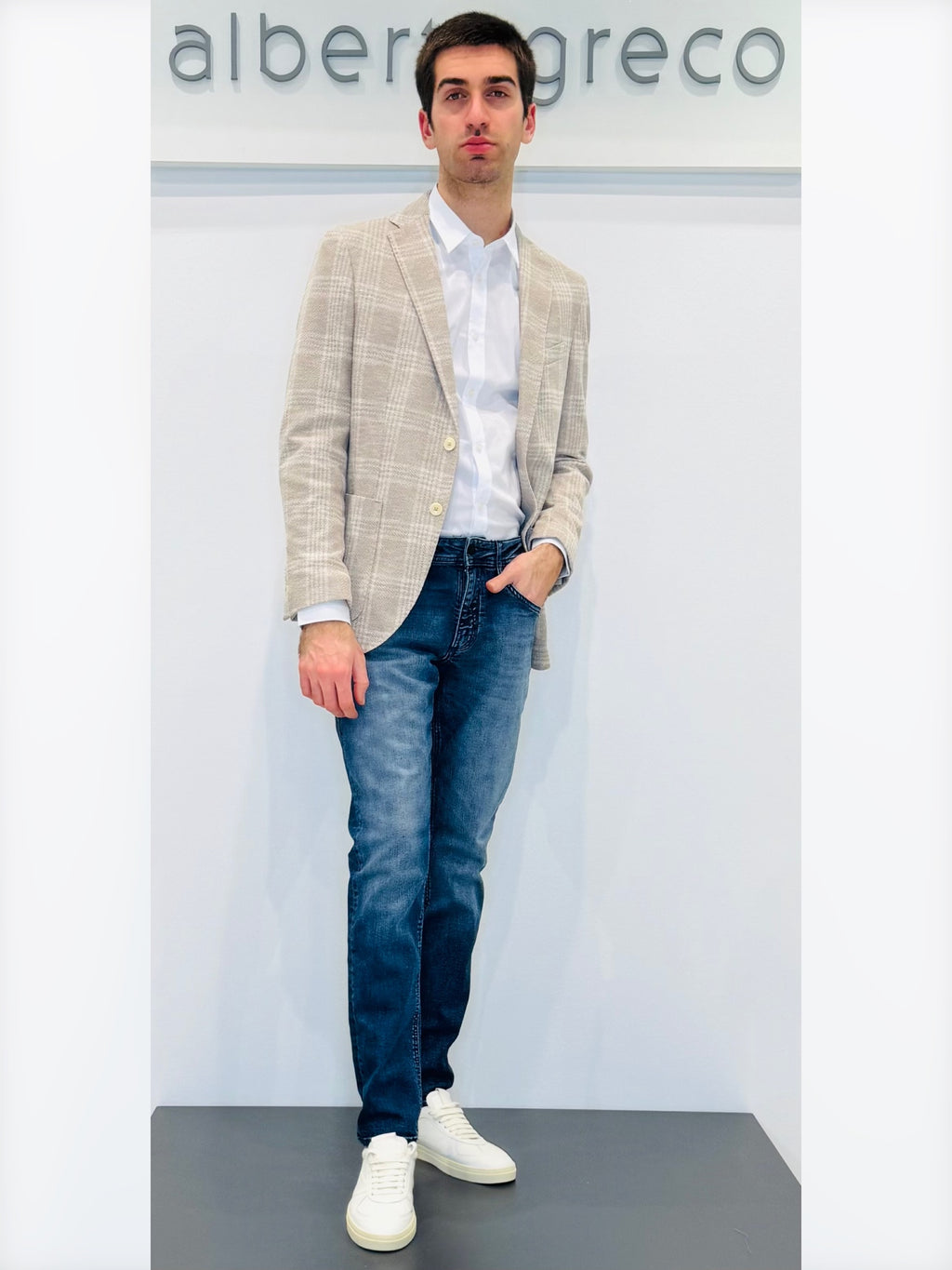 Giacca semi foderata, decostruita, monopetto due bottoniTasche a toppa e taschino tagliatoLavare a seccoTessuto esterno 36%VI 36%CO 26%PL 2%EA Fodera 100%VIMade in Italy