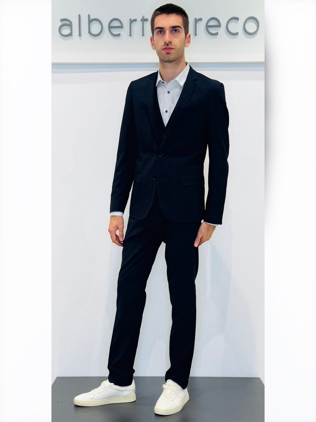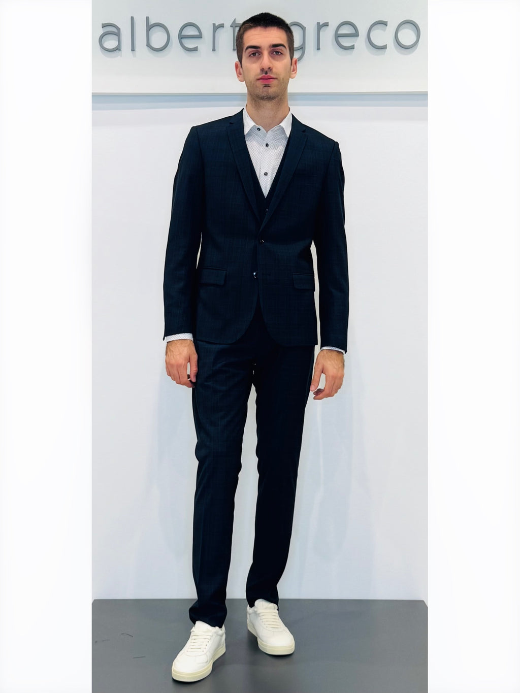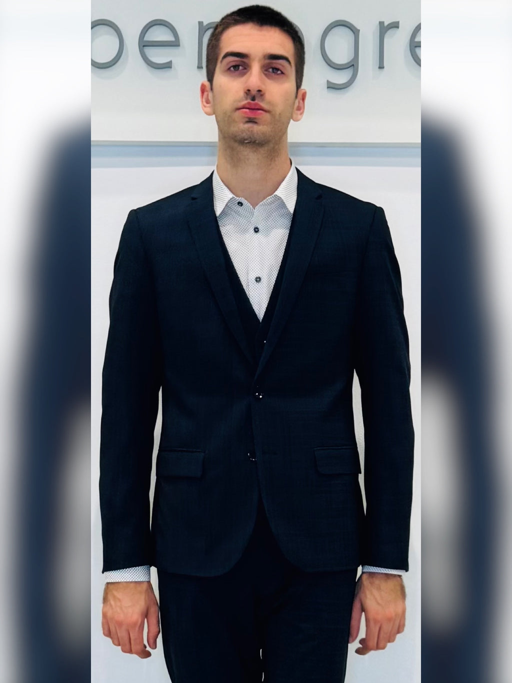 Giacca foderata, slim fit, monopetto due bottoniTasche a filetto con pattine e taschino tagliatoLunghezza giacca 72 cm nella taglia 50Lavare a seccoTessuto esterno 75%PL 23%VI 2%EA Fodera 55%PL 45%VI