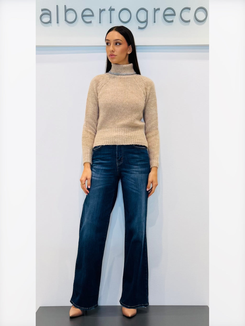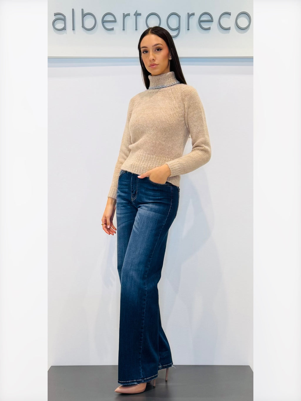 Maglia dolcevita con bordo in filato laminato su colloVestibilità regolare, dolcevitaCon manica a raglanLavare a 30°Composizione: Filato 54%AC 28%PA 7%WV 10%VI 1%PL