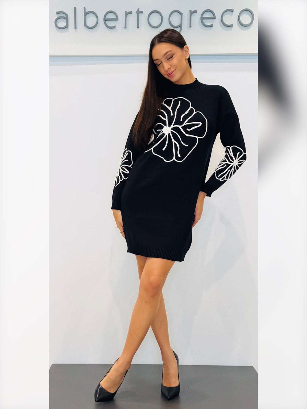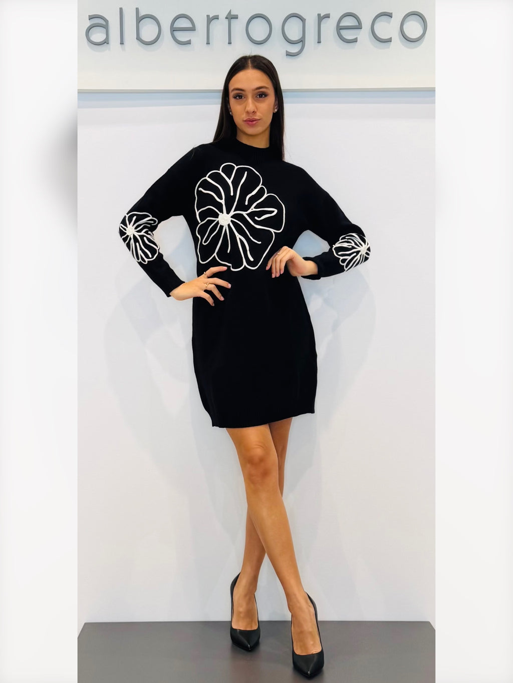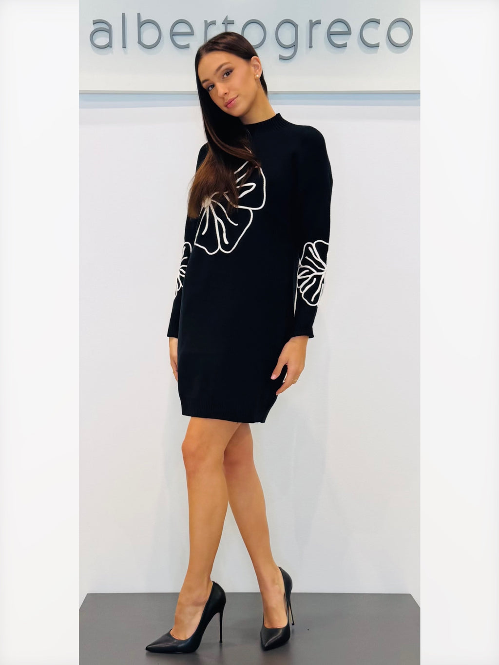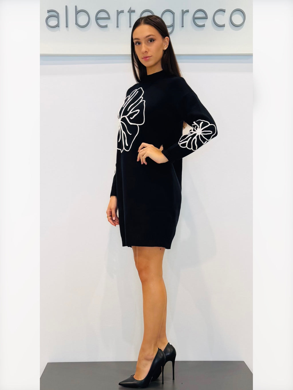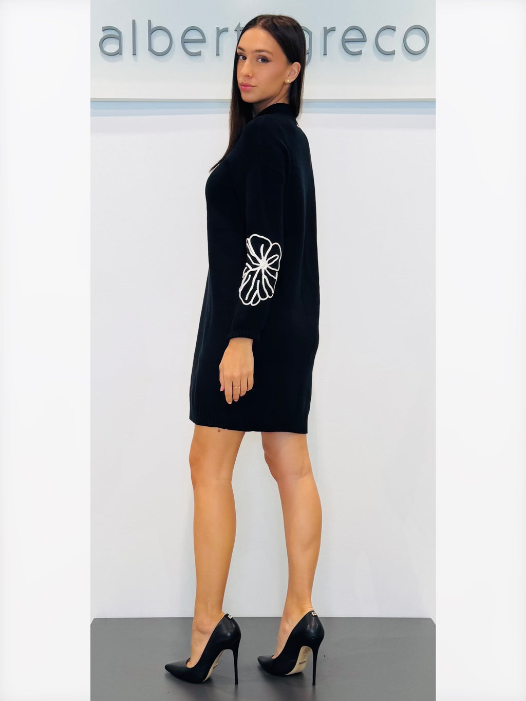 Abito lungo in maglia a lupetto con ricamoVestibilità ampiaGirocollo con maniche lungheLavare a manoMaglia 50%VI 28%PL 22%PA