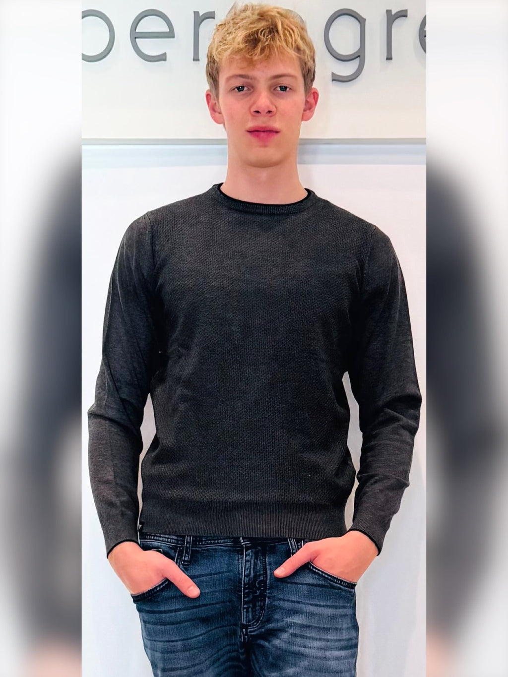 Maglia uomo melange operataVestibilità regolare aderenteGirocollo, manica lungaLavare a manoFilato 70%VI 30%PA
