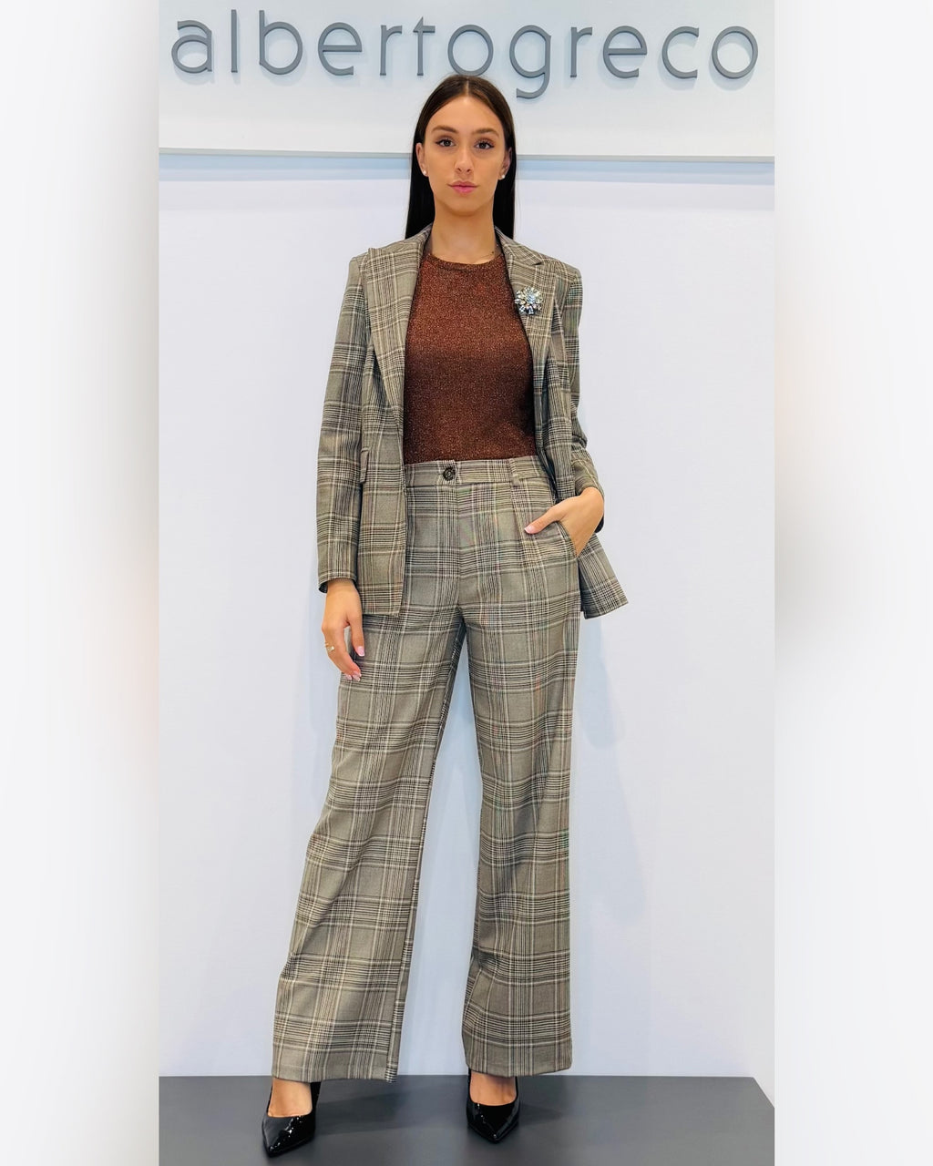Pantaloni a palazzo a quadri Vestibilità regolareCintura con passanti, con tasche a scomparsa nel fianco Chiusura con zip e bottone nel centro davanti, con cintura dietro elasticizzataLavare a mano 30°Tessuto 83%PL 34%VI 3%EAMade in Italy