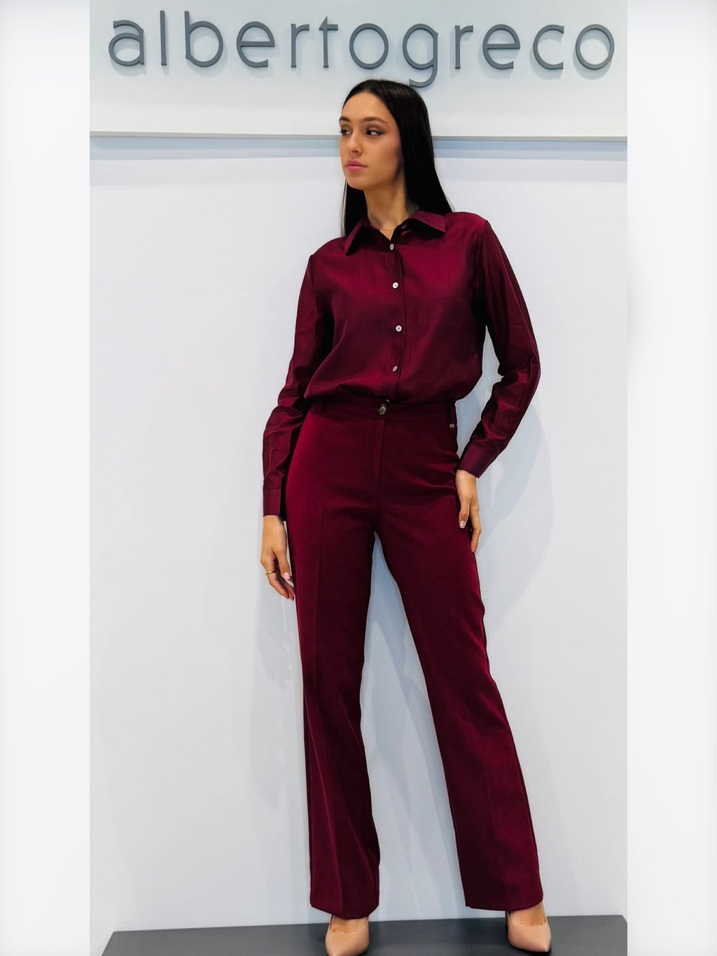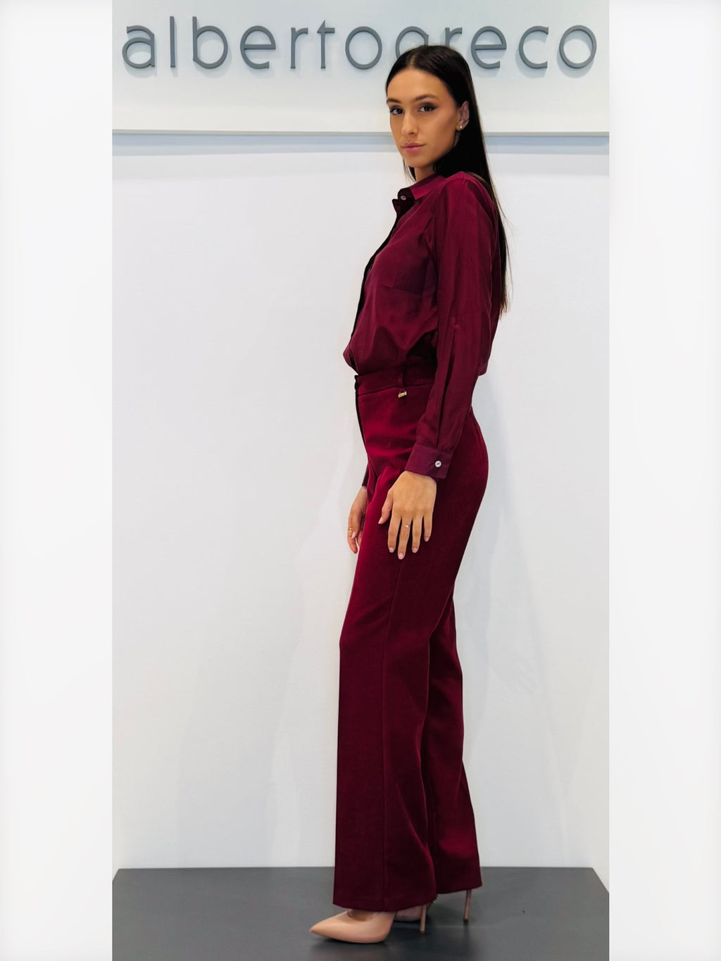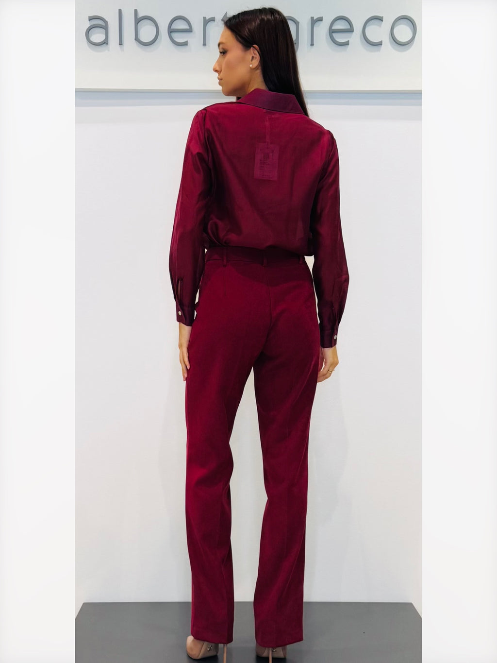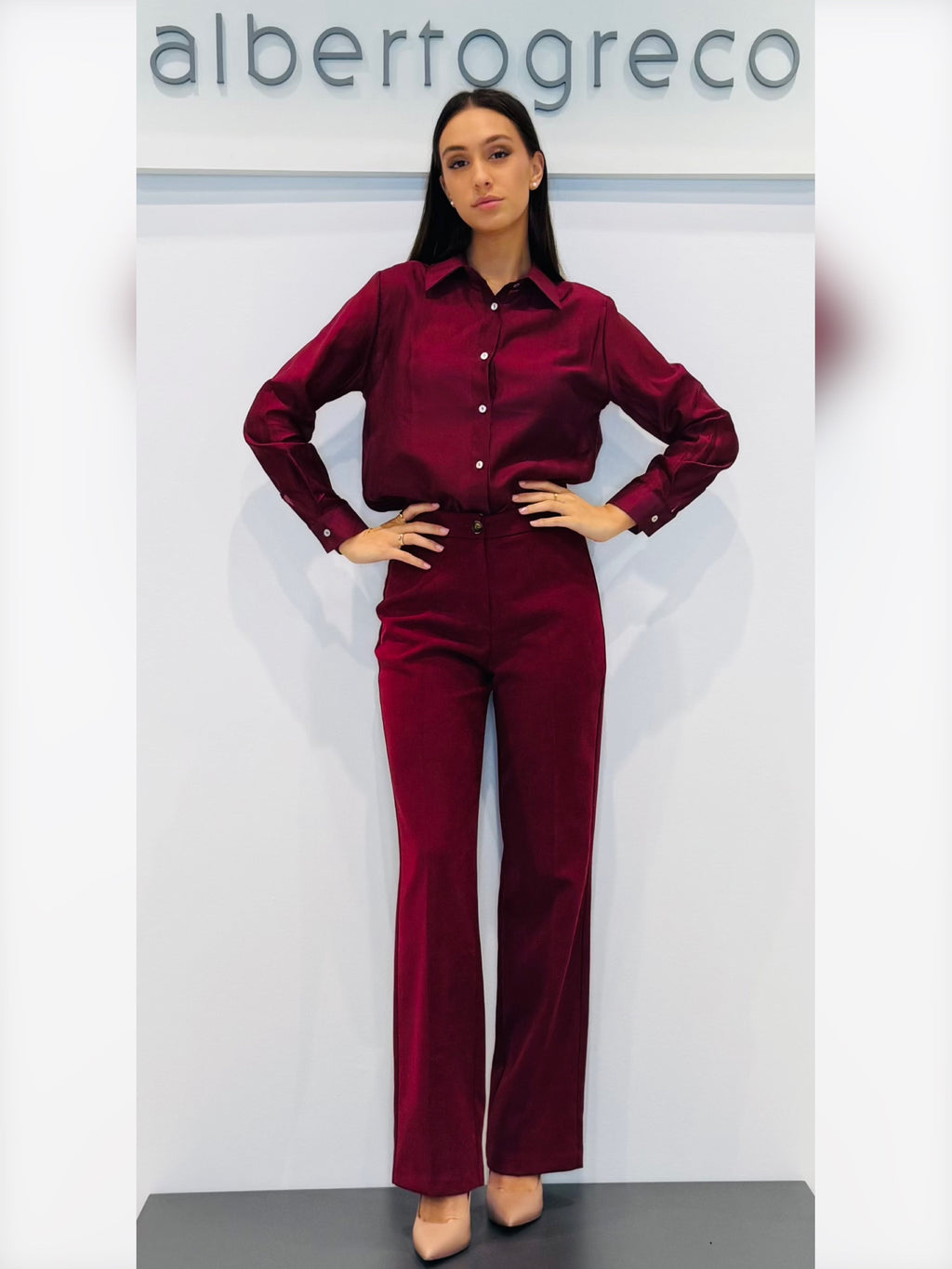 Pantaloni a palazzo in fustagnoVestibilità regolareCintura con passantiChiusura con zip e bottone nel centro davantiLavare a mano 30°Tessuto 97%PL 3%EAMade in Italy