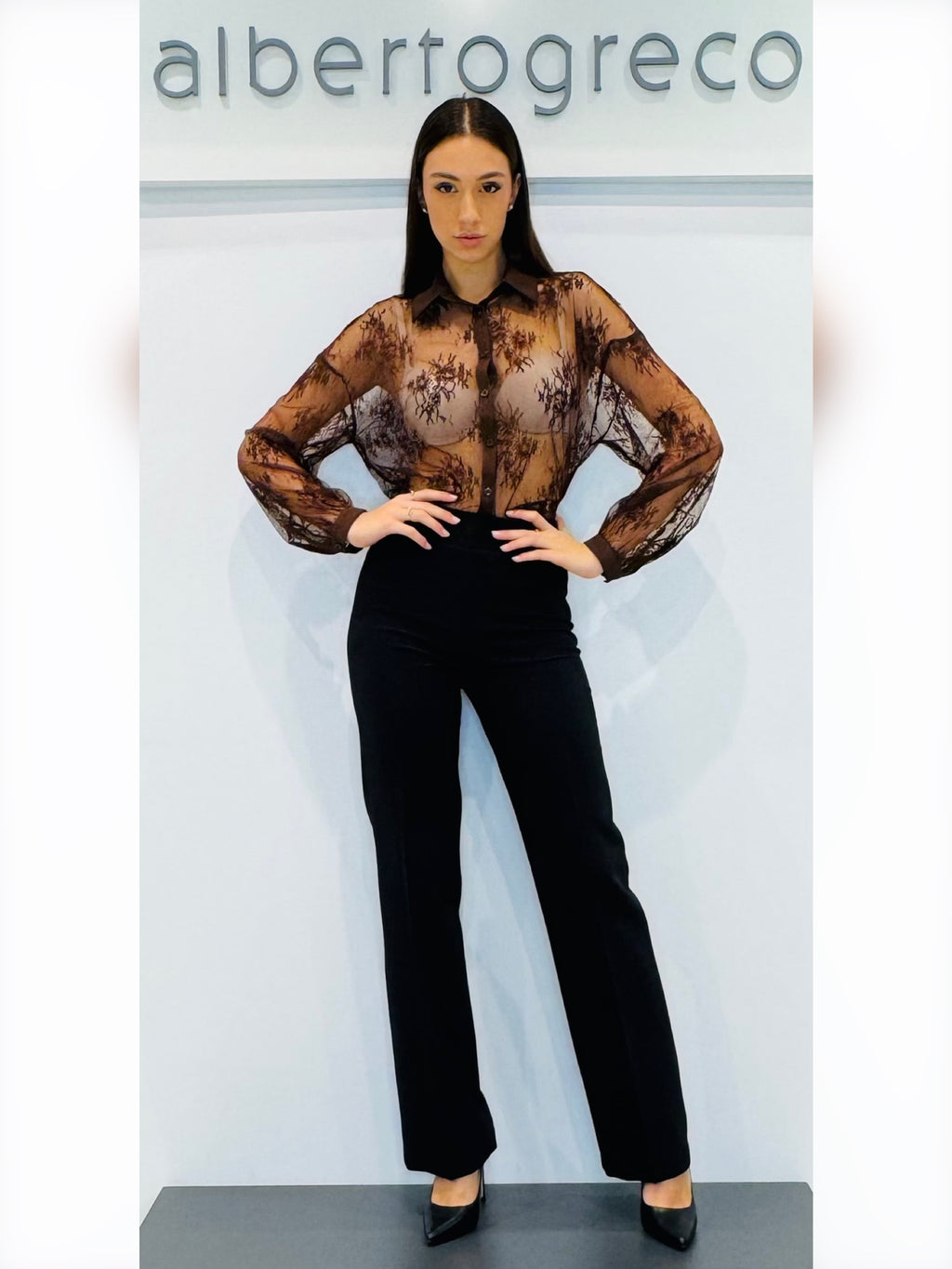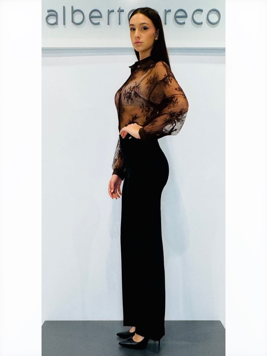 Pantaloni a palazzoVestibilità regolareCintura con passanti Chiusura con zip invisibile sul fiancoLavare a mano 40°Tessuto 92%PL 8%EAMade in Italy