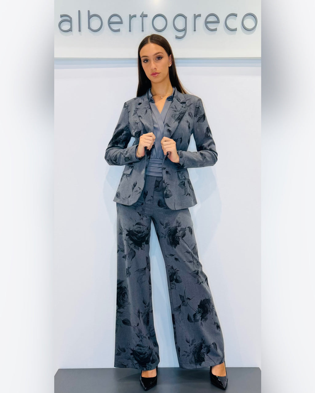 Pantaloni a palazzo fantasia florealeVestibilità regolareChiusura con zip e due bottoni nel centro davantiLavare a 30°Tessuto 33%VI 63%PL 4%EAMade in Italy