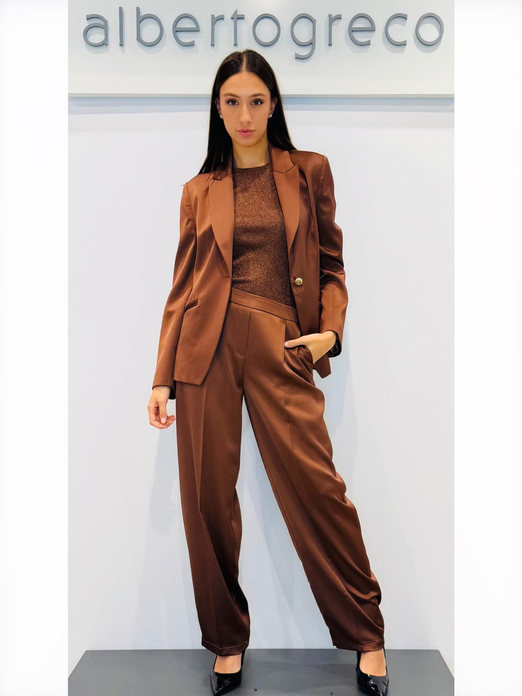 Vestibilità regolare ampia con pinces e più stretta su fondoPantaloni con tasche alla franceseZip invisibile sul centro dietroCon tasche a pistagna estetiche sul dietroLavare a 30°Tessuto 100%PL