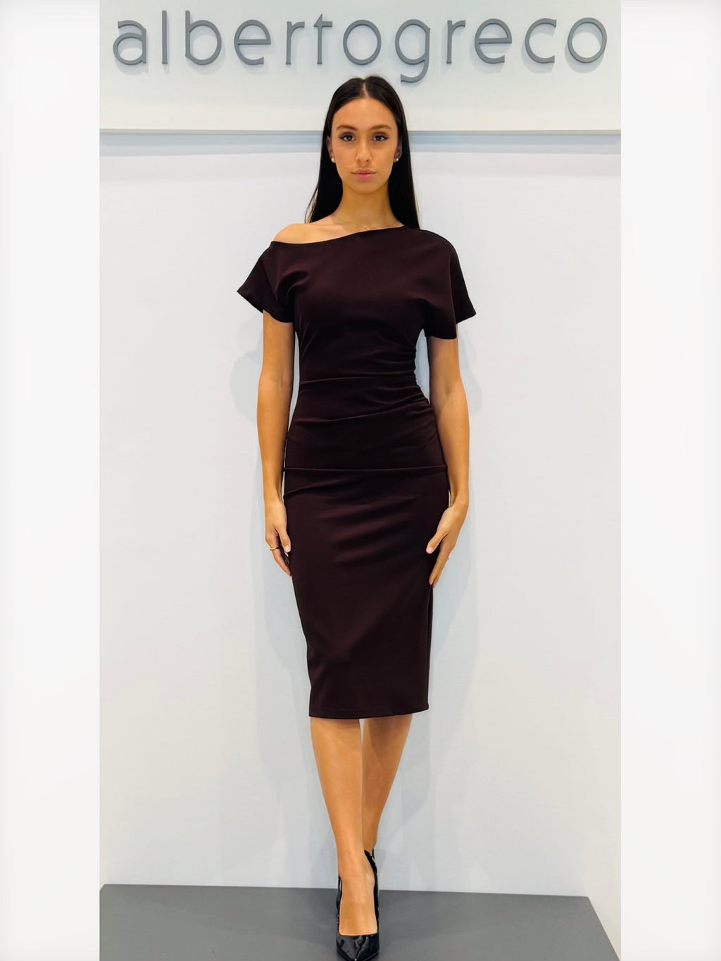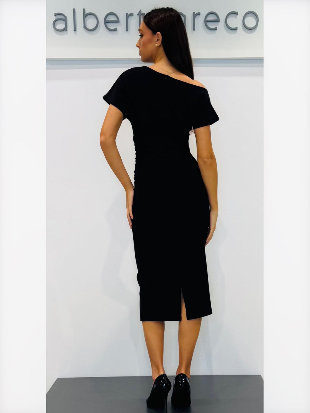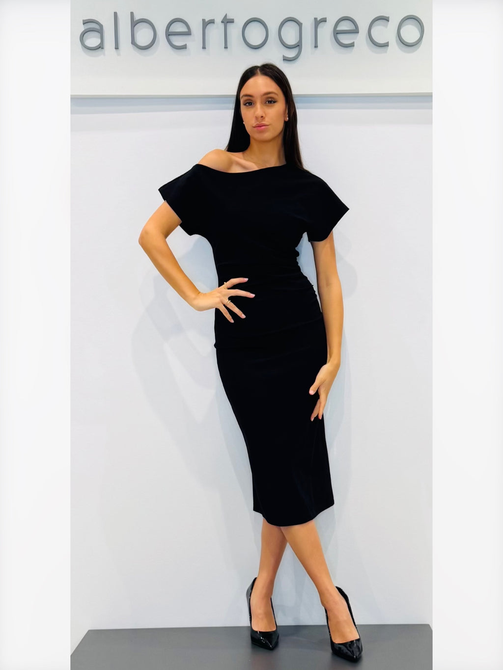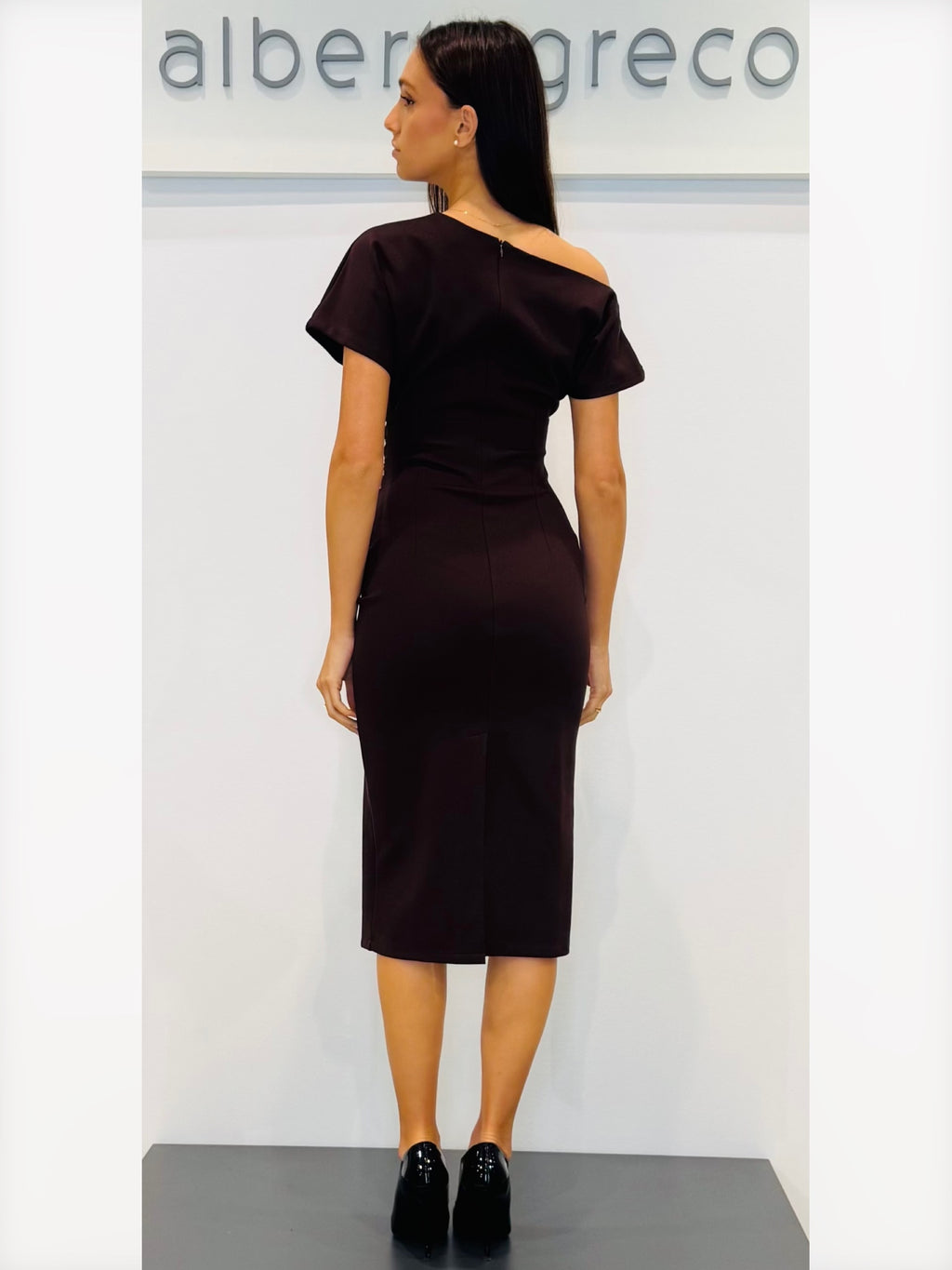Tubino in jersey con scollo asimmetrico