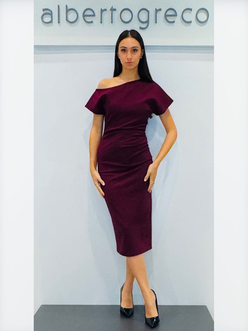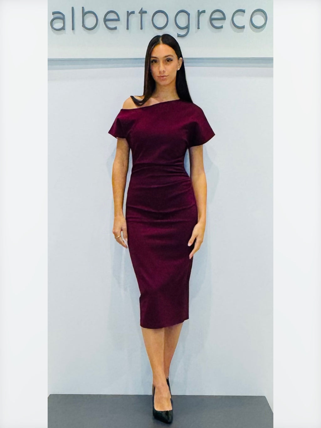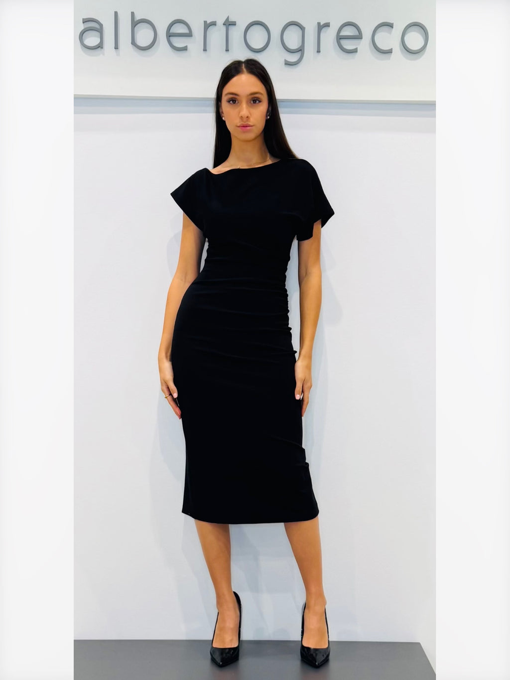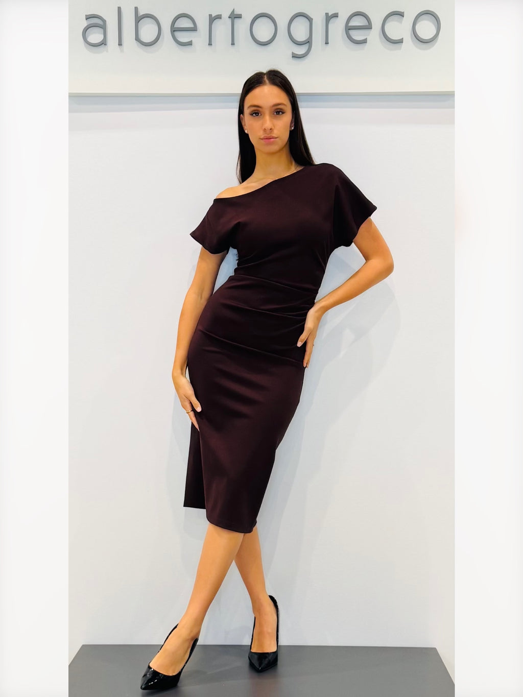 Tubino in jersey con scollo asimmetrico