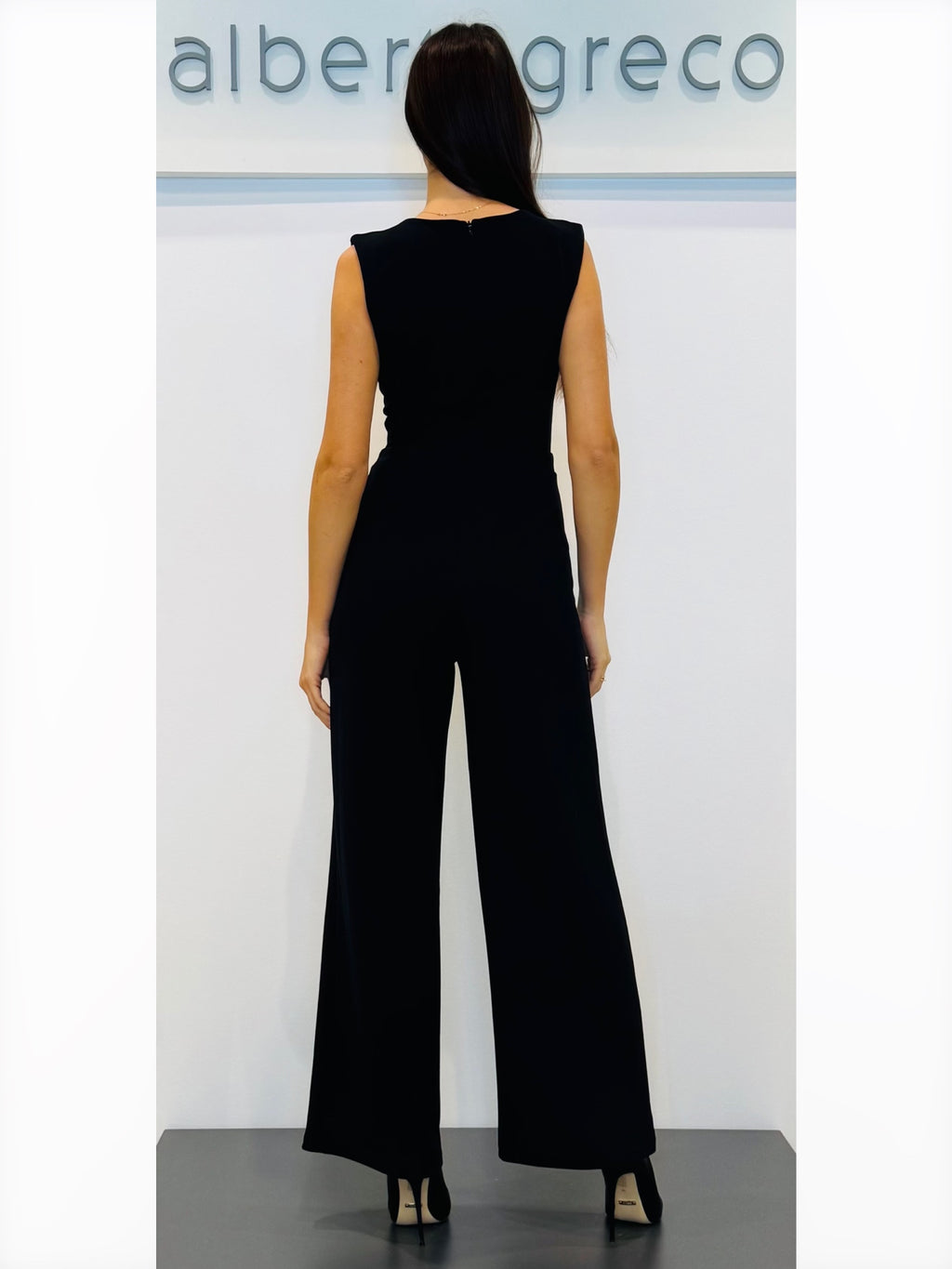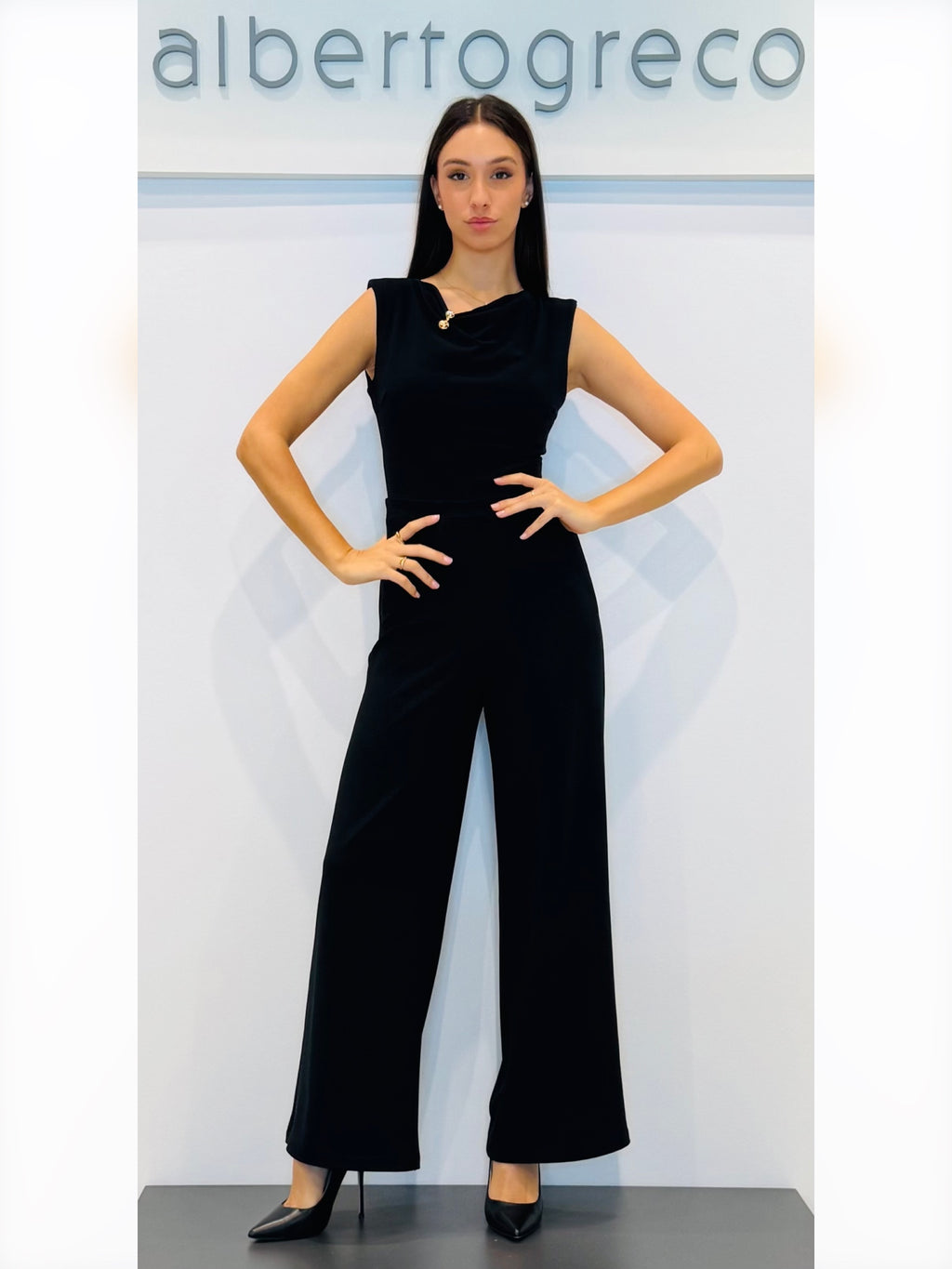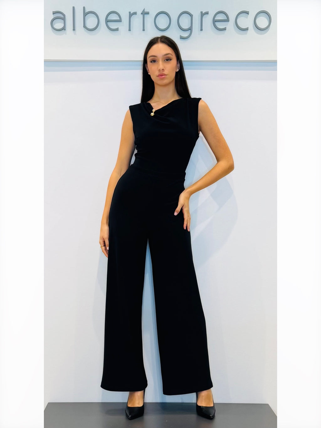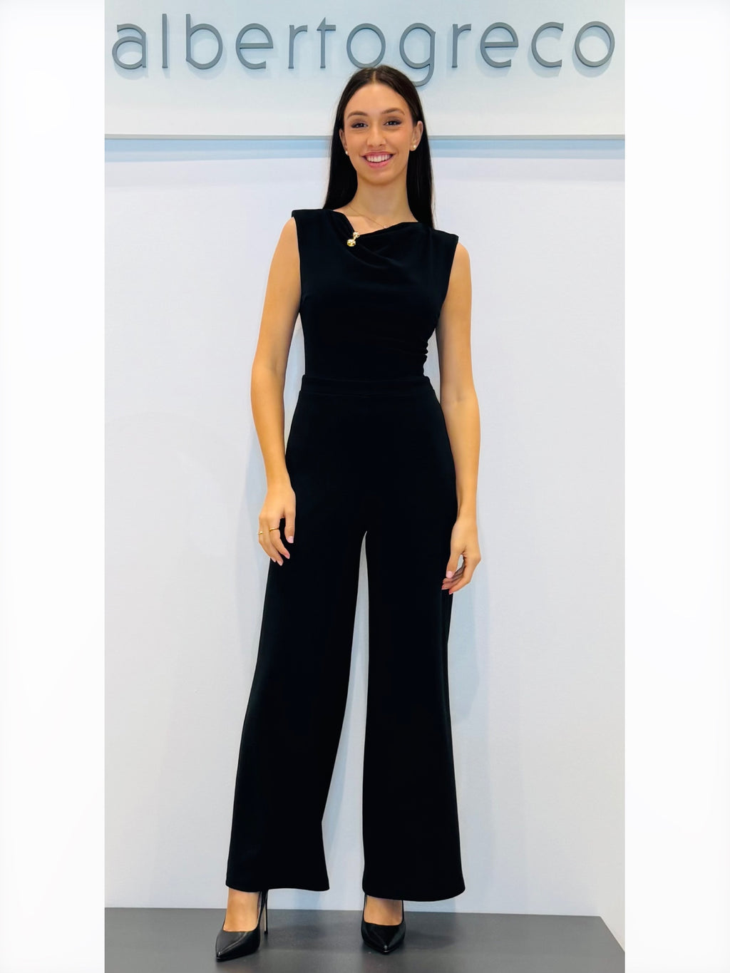 Tuta in crepe girocollo con drappeggio